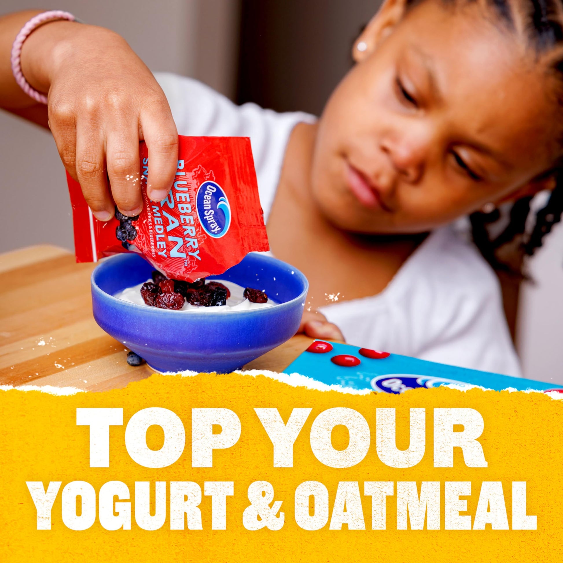 Q: Can I use Ocean Spray® Blueberry Cran™ Snack Medley as a topping for other foods?A: Absolutely! You can use the Ocean Spray® Blueberry Cran™ Snack Medley as a topping for oatmeal, yogurt, or salads to enhance their flavor and add a nutritious boost.