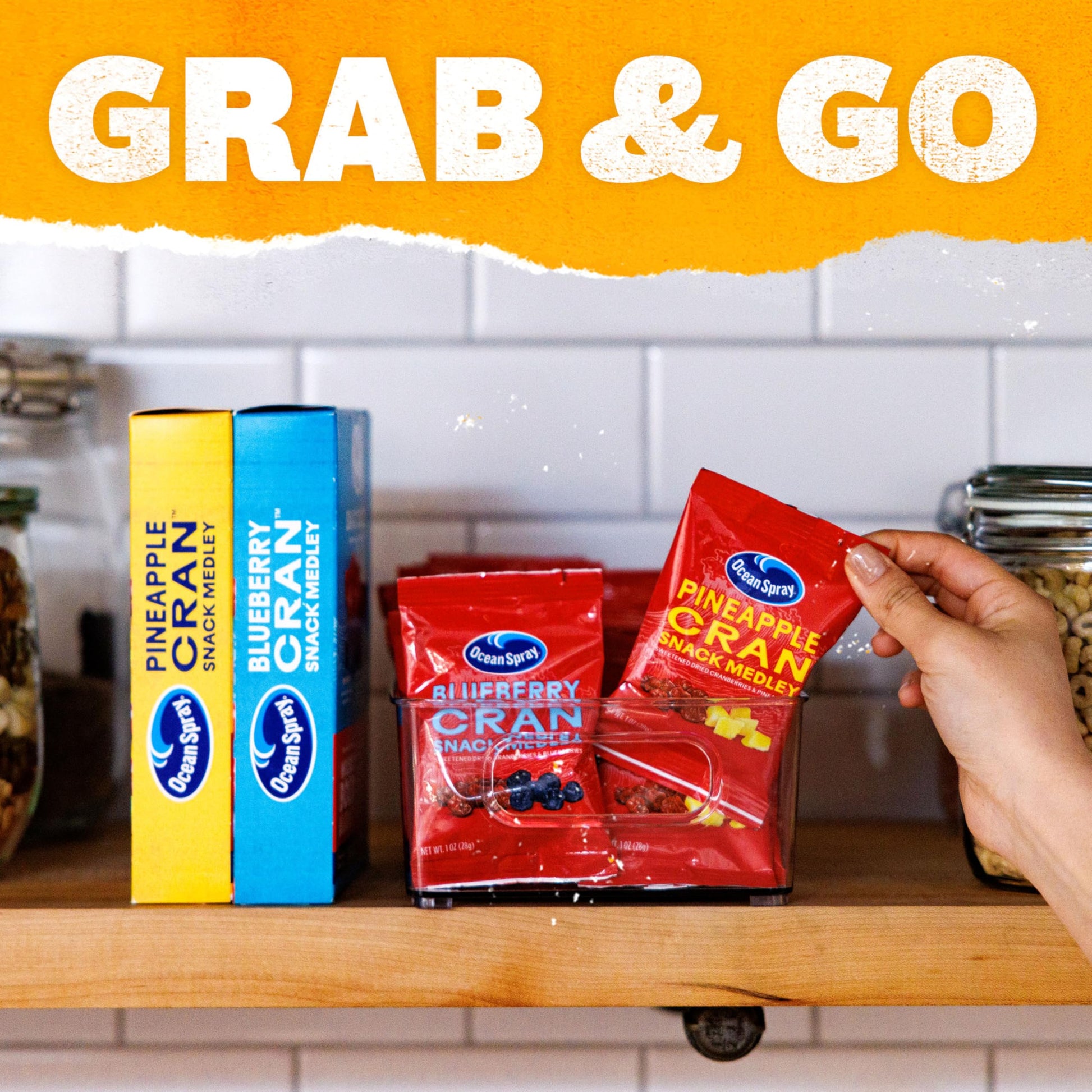 Big Bold Flavors. Perfectly Portioned. Ocean Spray Blueberry Cran Snack Medley. The Cranberry Flavor You Know And Love, Paired With Juicy Blueberry For The Ultimate Sweet And Tangy Fruit Snack Experience. Enjoy A Dried Fruit Snack Pack Anytime, Anywhere. Lunch Snacks At School. Afternoon Bites On The Way To Practice. Late-Night Cravings On Road Trips. It'S Always The Right Time For These Single Serve Snacks. Made From Real Fruit For The Bold Flavor Of Dried Cranberries And Dried Blueberries. Transform Boring Lunches Into Mic-Dropping Meals. Top Your Morning Parfait. Mix Them In Your Oatmeal Or Yogurt. Take Them As Nutritious On The Go Snacks During Weekend Errands. Other Snacks Couldn'T Keep Up If They Tried. However You Eat Them, Don'T Let Anything Stand In The Way Of Your Ocean Spray Blueberry Cran Snack Medley Fix. They'Re Perfectly Portioned, Individual Snacks For Your Busy Life. Ocean Spray Believes In The Power Of The Mighty Cranberry; Born Tart. Raised Bold.