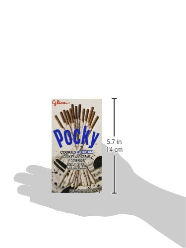 Did you know that Pocky is the most popular chocolate covered biscuit in Japan? We've taken the classic flavor combination of cookies and cream and turned it into a delicious new snack. Crispy, creamy, and satisfying, the chocolate-flavored cookie stick perfectly balances the sweet cream coating. With specks of crunchy cookie bits in the cream, this is a new twist on a classic taste. Combine that with an easy-to-handle stick that keeps the cream off of your hands, and you've got the ultimate in snacking heaven. With plenty of sticks in each box, Pocky is about sharing happiness with friends, family, co-workers-anyone, anytime, anywhere. Just open a box, pass it around, and watch the smiles and happiness spread. 1box /70gram, 2.47 ounce. 10 boxes/tray.