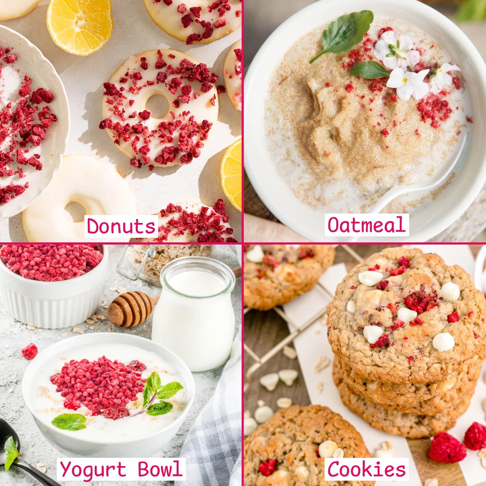 - Q: Can I use freeze dried raspberries in smoothies or yogurt? A: Absolutely! Freeze dried raspberries are versatile and can be sprinkled on yogurt or blended into smoothies. They add a rich raspberry flavor and beautiful color, making your breakfast or snack not only delicious but visually appealing too.
