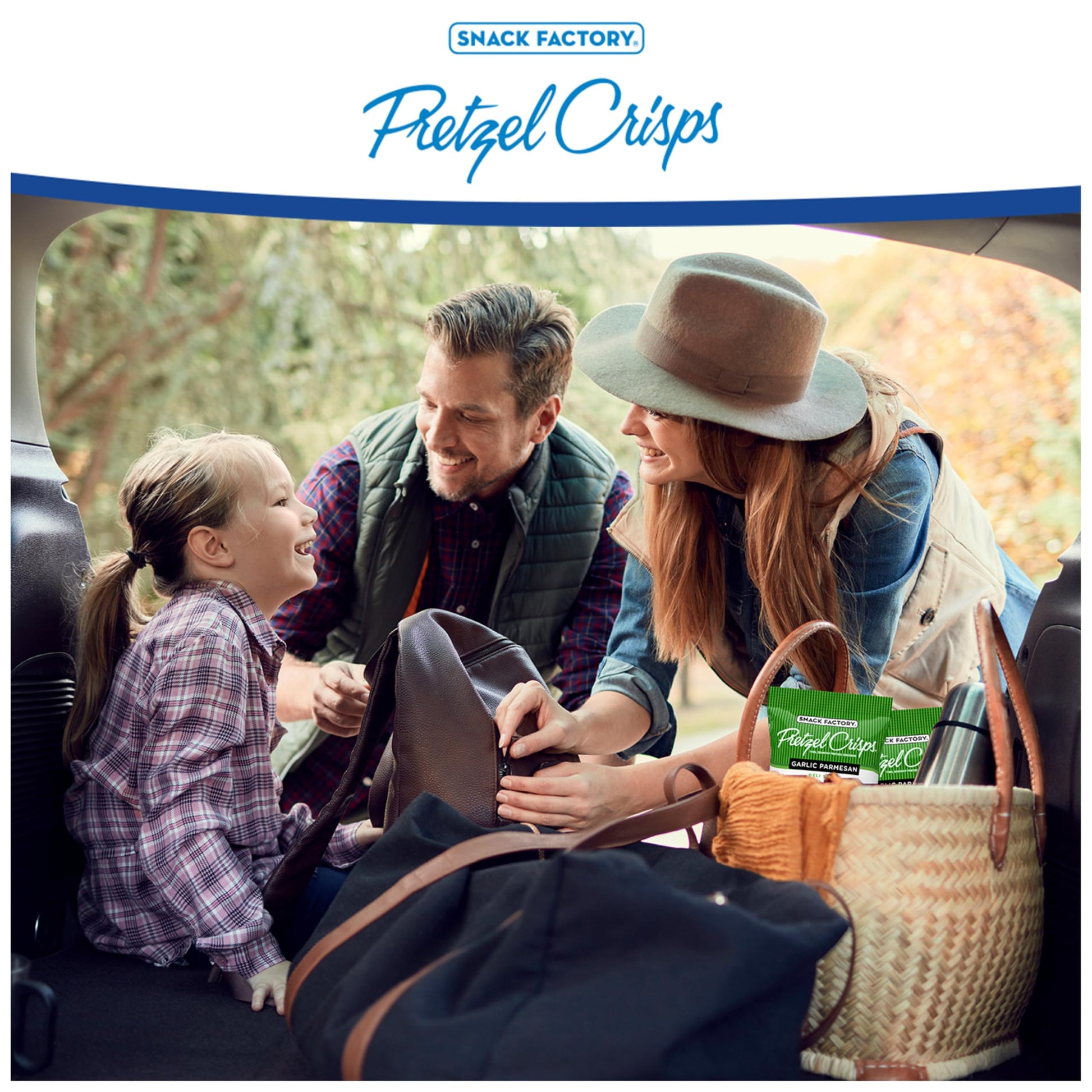 Snack Factory Garlic Parmesan Pretzel Crisps Are A Modern Twist On Traditional Pretzels. Theyre Made With Quality Ingredients And Baked Up With Zingy, Savory Garlic And Parmesan Cheese Flavors. Always Thin And Crunchy, This This Tasty Snack Is A Gourmet Alternative To An Old Favorite. Pretzel Crisps Give You The Best Part Of Pretzels, Without The Doughy Center, For A Satisfying, Hearty Crunch In A Shape That'S Dippable, Toppable, And Deliciously Snackable. Baked Just Right To A Golden Brown And Perfectly Flavored, Pretzel Crisps Have A Slim But Sturdy Profile That Holds Up To Almost Anything. Try Them With Hummus Or Your Favorite Dips And Spreads For A Satisfying Snack. With All That Baked-In Flavor Theyre Also Sure To Handle Your Cravings Straight Out Of The Bag. The 3-Ounce Bags Of Pretzel Crisps Are Tasty And Ready To Go So You Can Enjoy Flavorful Pretzel Snacks At Home Or Out And About. Our Snack Factory Garlic Parmesan Pretzel Crisps Are Flat-Out Delicious.
