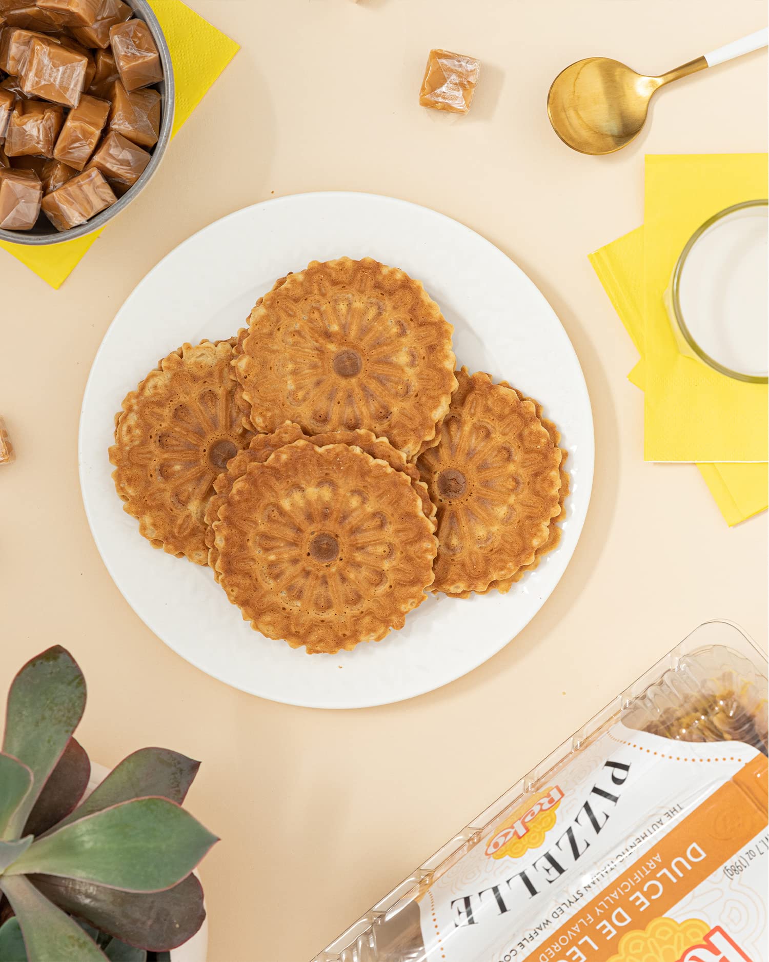 Reko Pizzelle cookies are Addictively Delicious! And deliciously addictive. If you’d like just a hint of sweet, you’ve found your cookie. Delicious on their own, Reko Pizzelle cookies also serve as an enticing blank canvas for your own culinary wizardry. Reko Pizzelle Italian styled waffle cookies can be enjoyed as an any time-of-day snack, or as an indulgent dessert to satisfy your sweet tooth. Especially nice when paired with a hot beverage, or cold glass of milk! There are endless ways to indulge with our Reko Pizzelles, without regrets. Our delicious waffle cookies, which are baked in a peanut-free facility, and offer a low calorie lightness and low calories for a permissible indulgent snack. Enjoy the crisp delicate flavor with morning latte, afternoon tea, crumbled in yogurt or top off your evening bowl of ice cream - there’s no pizzelle rulebook. Luckily for you, that’s half the fun. The variety and versatility of our pizzelles allow you to make any moment of your day a Pizzelle-bration!
