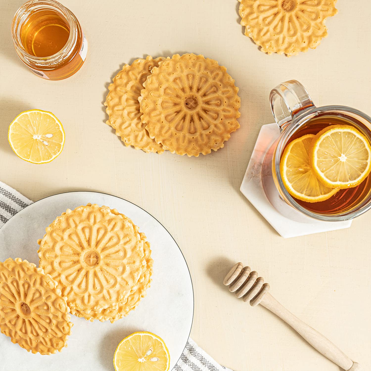 - Q: How can I enjoy Reko Pizzelle cookies? A: You can enjoy Reko Pizzelle cookies on their own as a light snack, or pair them with tea, coffee, or gelato for a delightful treat. They can also be crumbled on yogurt or used as a base for various dessert recipes.