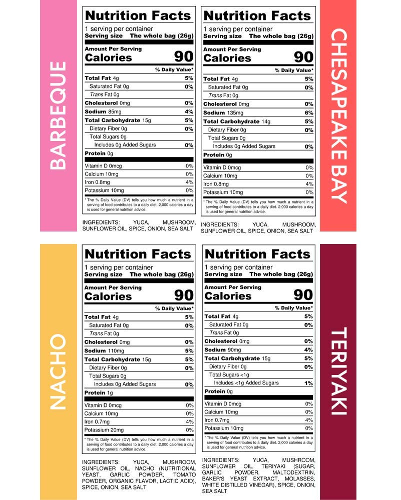 The Humble Beginnings Of Snacklins Can Be Traced In The Back Kitchen Of A Washington D.C. Barbeque Joint Sometime In 2015. Samy Kobrosly, A Former Radio Personality, And Chef, Became Fixated On The Concept Of A Meat-Free Pig Rind After Joking With A Friend About His Inability To Engage In The Traditional Snack Because Of His Background As A Muslim. Kobrosly'S Upbringing Prevented Him From Eating Pork. Following Several Rounds Of Trial And Error, He Landed On A Simple Recipe Of Yuca, Mushrooms, And Onions To Create A Crunchy, Airy, 100% Vegan, And Plant-Based Crisp That Resembled A Pork Rind. The Unique Ingredients And Process Used For Making Snacklins Resulted In Something Truly Unique: A Grain-Free, Simple-Ingredient, Scoop-Shaped Crisp With Fewer Calories Than Traditional Pork Rinds And Potato Chips. Soon, People Started Taking Notice And Snacklins Found Its Way To Local Bar Counters And Grocery Shelves. Now Available In 6 Delicious Flavors, Barbeque, Chesapeake Bay, Cinnamon Churo, Nacho, Sea Salt And Vinegar And Teriyaki. So Go Ahead, Embrace The Delight, And Enjoy Eating The Whole Bag! Snacklins Are Made At Our Snacktory Using Real, Fresh Vegetables. Yuca Is A Naturally Gluten-Free Root Vegetable Native To South America. His Remarkable Ingredient, Often Deemed Healthier Than Potatoes, Brims With Essential Nutrients Including Potassium, Choline, And Vitamin C. Meanwhile, Our Mushrooms Originate From Pennsylvania, The World'S Mushroom Hub. These Fungi Boast Minimal Calorie Content, Negligible Fat And Cholesterol, And Are Remarkably Low In Sodium. Complementing This Dynamic Duo, Onions Make Their Appearance. Notably Low In Calories, They Contribute Antioxidants And Play A Crucial Role In Enhancing The Flavor Profile Of Each Crisp. Our Commitment To Quality Ingredients Is What Makes Snacklins An Exceptional Choice.