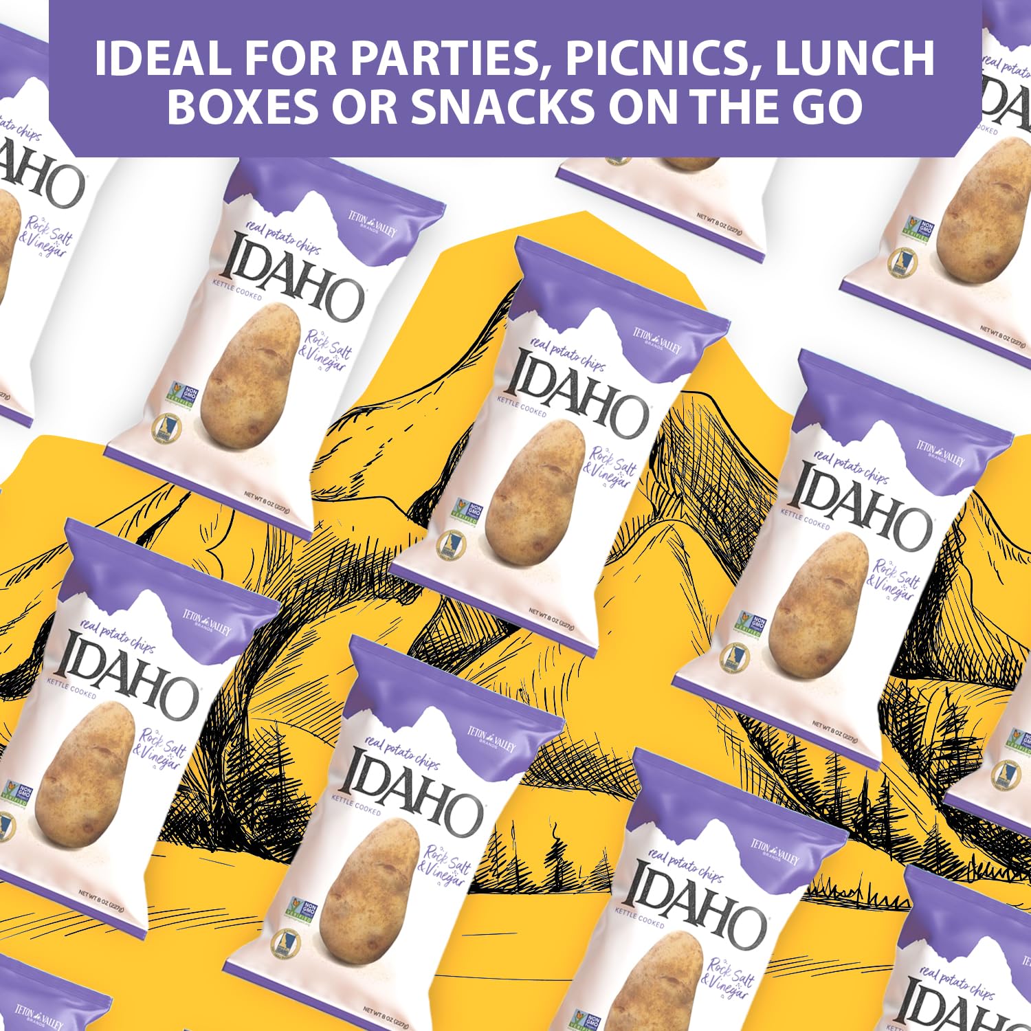 Q: How should I store the Idaho kettle-cooked potato chips for the best freshness?A: To maintain freshness, store the Idaho kettle-cooked potato chips in a cool, dry place, and ensure the bag is tightly sealed after opening.