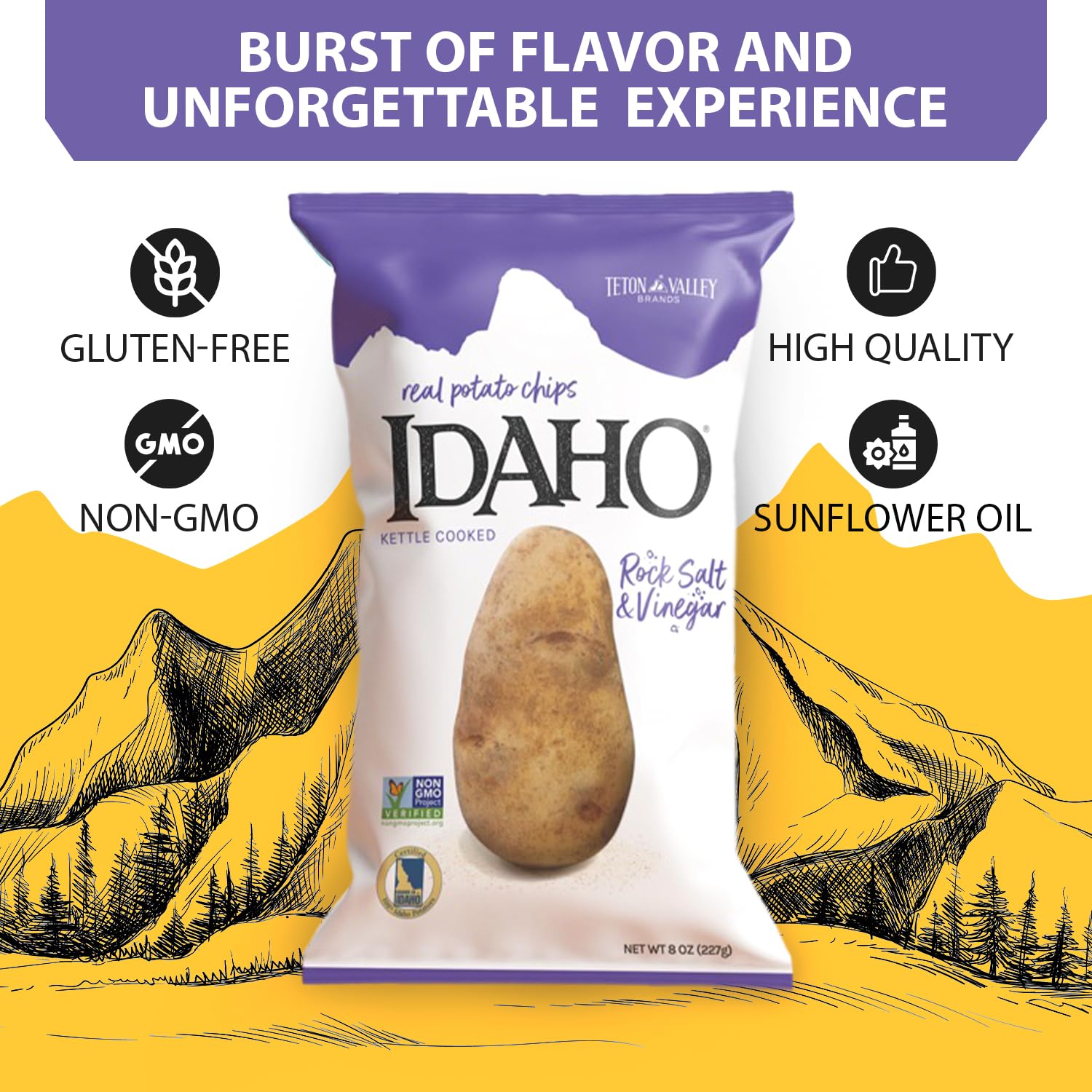 Q: Are Teton Valley Brands Idaho Kettle Cooked Salt and Vinegar Potato Chips gluten-free?A: Yes, Teton Valley Brands Idaho Kettle Cooked Salt and Vinegar Potato Chips are gluten-free, making them a safe snacking option for those with gluten sensitivities.