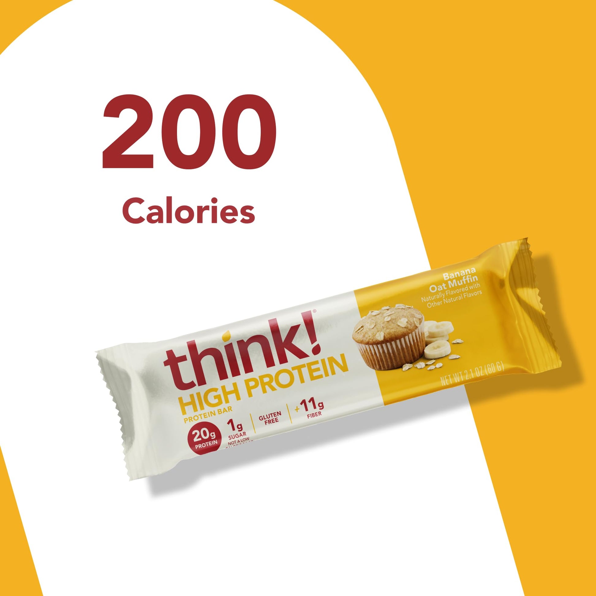 Each Think! High Protein Bar Delivers The Flavors You Crave Most And The 20G Of Protein From Quality Ingredients You Want When Its Time To Snack Strong. Our Banana Oat Muffin Bars Are Filled With The Flavors And Aromas Of Ripe Banana And Warm, Fresh-Baked Muffins With The Texture Of Wholesome Oats. Add 10G Of Fiber And 1G Of Sugar*, And You Have A Go-Anywhere Snack You Can Count On When Youre Out On The Trail, Busy At Work, Heading To The Gym, Or Just Want To Indulge Yourself! * Not A Low Calorie Food
