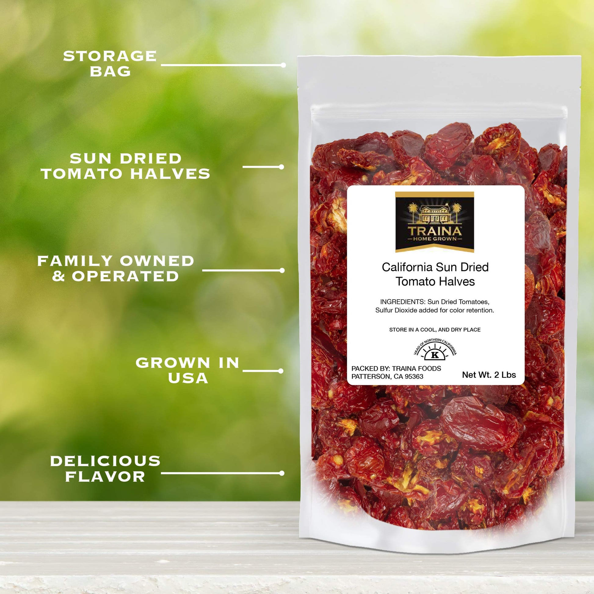 Enjoy Traina Home Grown Sun Dried Tomatoes. They Make A Great, Healthy Snack And Are Great As An Ingredient. Packed In A 2 Lb Resealable Pouch For Your Convenience. Sweet, California Tomatoes Dried In The California Sun. Enhance The Flavor Of Your Salads, Sauces, Pizzas, And More. Home Grown Quality.