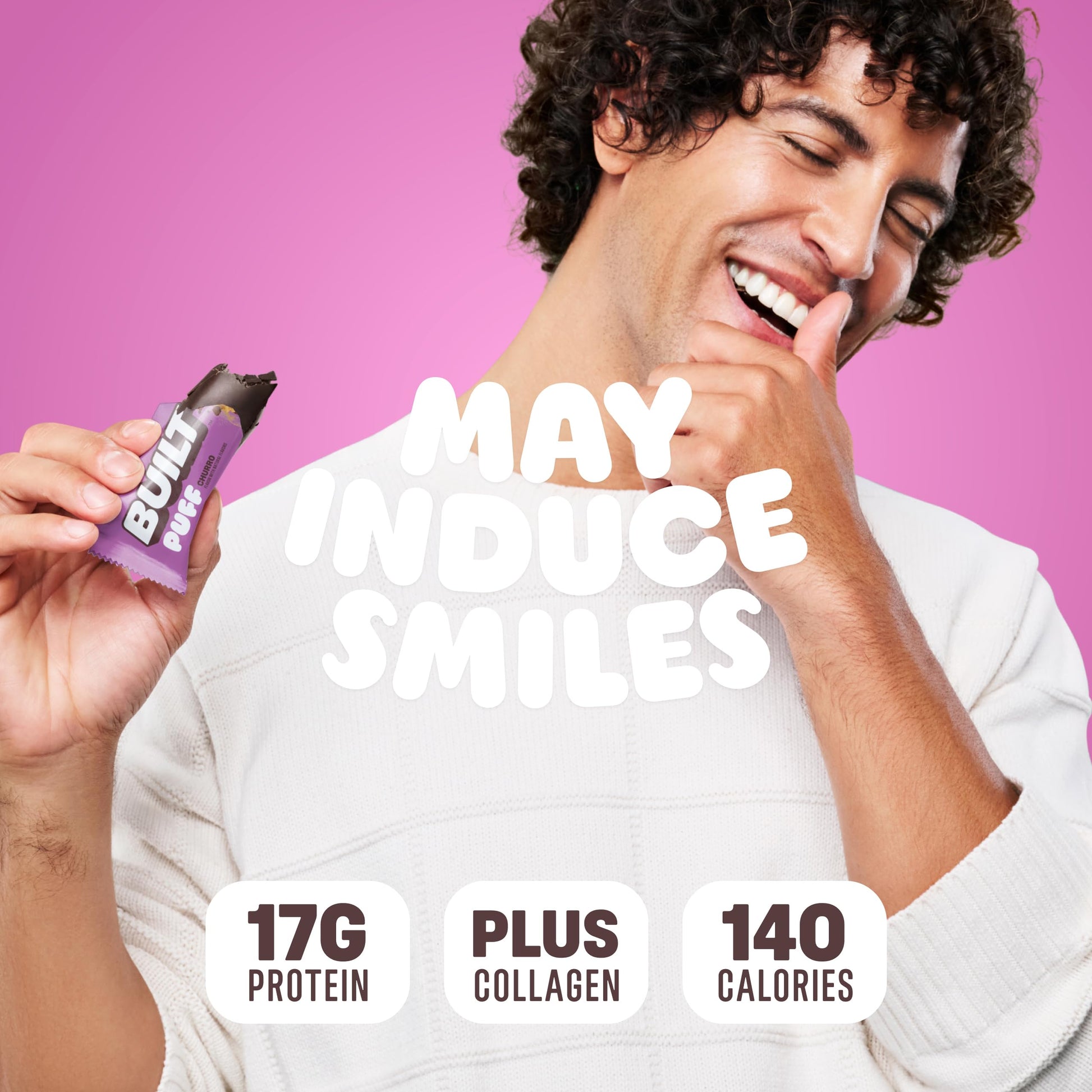 - Q: What flavors are available for Built Puff Protein Bars? A: Currently, Built Puff Protein Bars are available in a delightful Churro Puff flavor, which combines a light, fluffy texture with rich chocolate to satisfy your taste buds while providing essential nutrition.