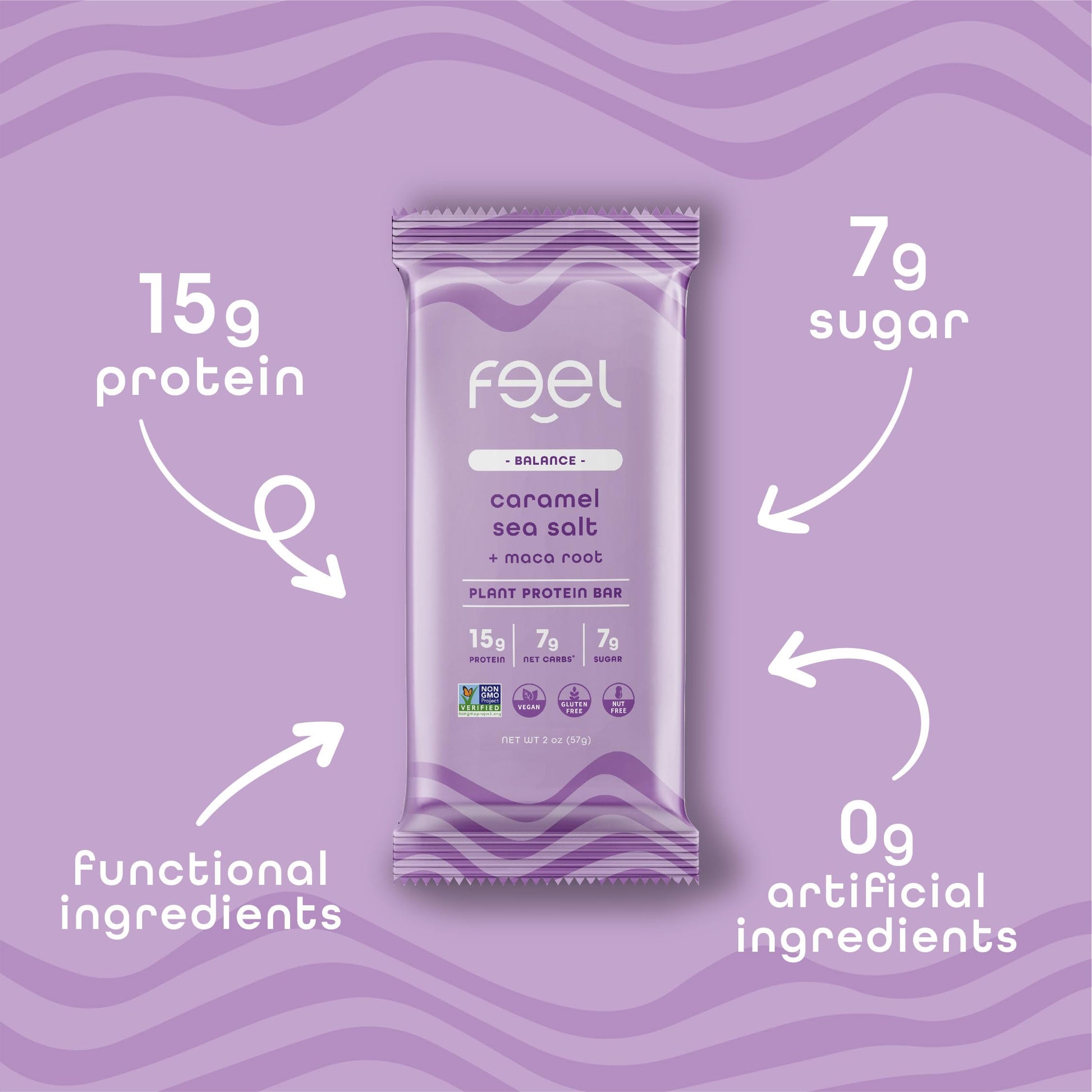 Feel Vegan Protein Bars | Caramel Sea Salt | Keto | Gluten Free | Organic | Maca | 15g Plant Protein | Low Carb | High Protein |