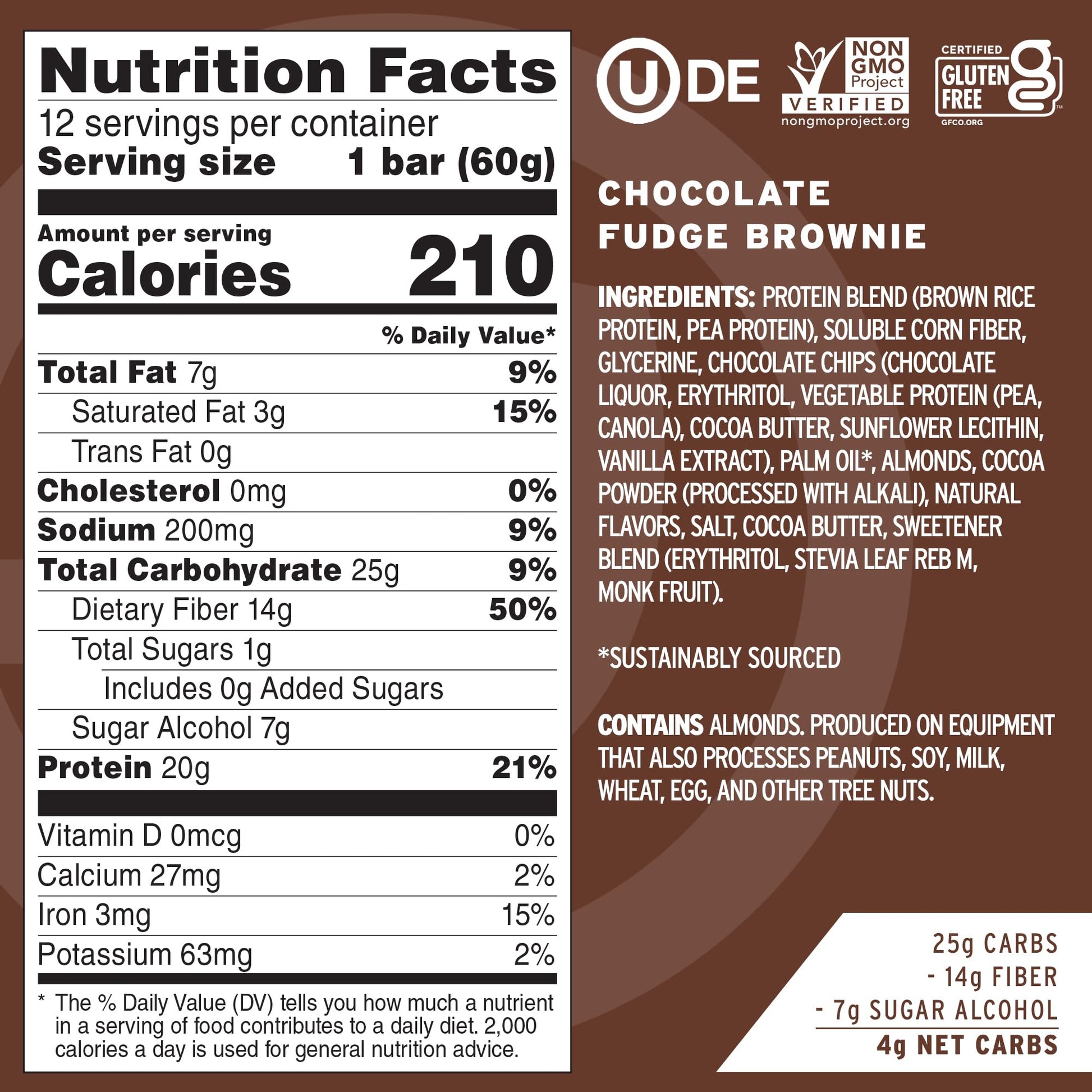 No Cow High Protein Bars, Chocolate Fudge Brownie - Healthy Snacks, 20g Vegan Protein, High Fiber, Low Sugar, Keto Friendly, Dai