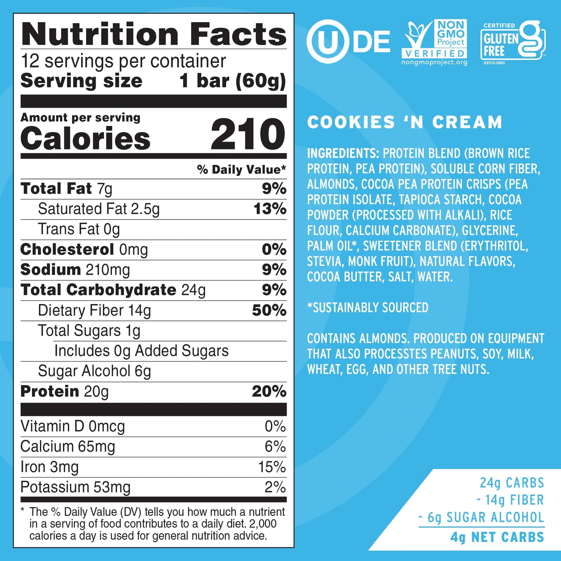 Big taste of delicious cookies and cream, dairy-free, high protein, non-gmo, and ridiculously low sugar. No Cow protein bars are the cleanest source of dairy-free fuel out there. So grab a No Cow bar, get out there, and crush it!