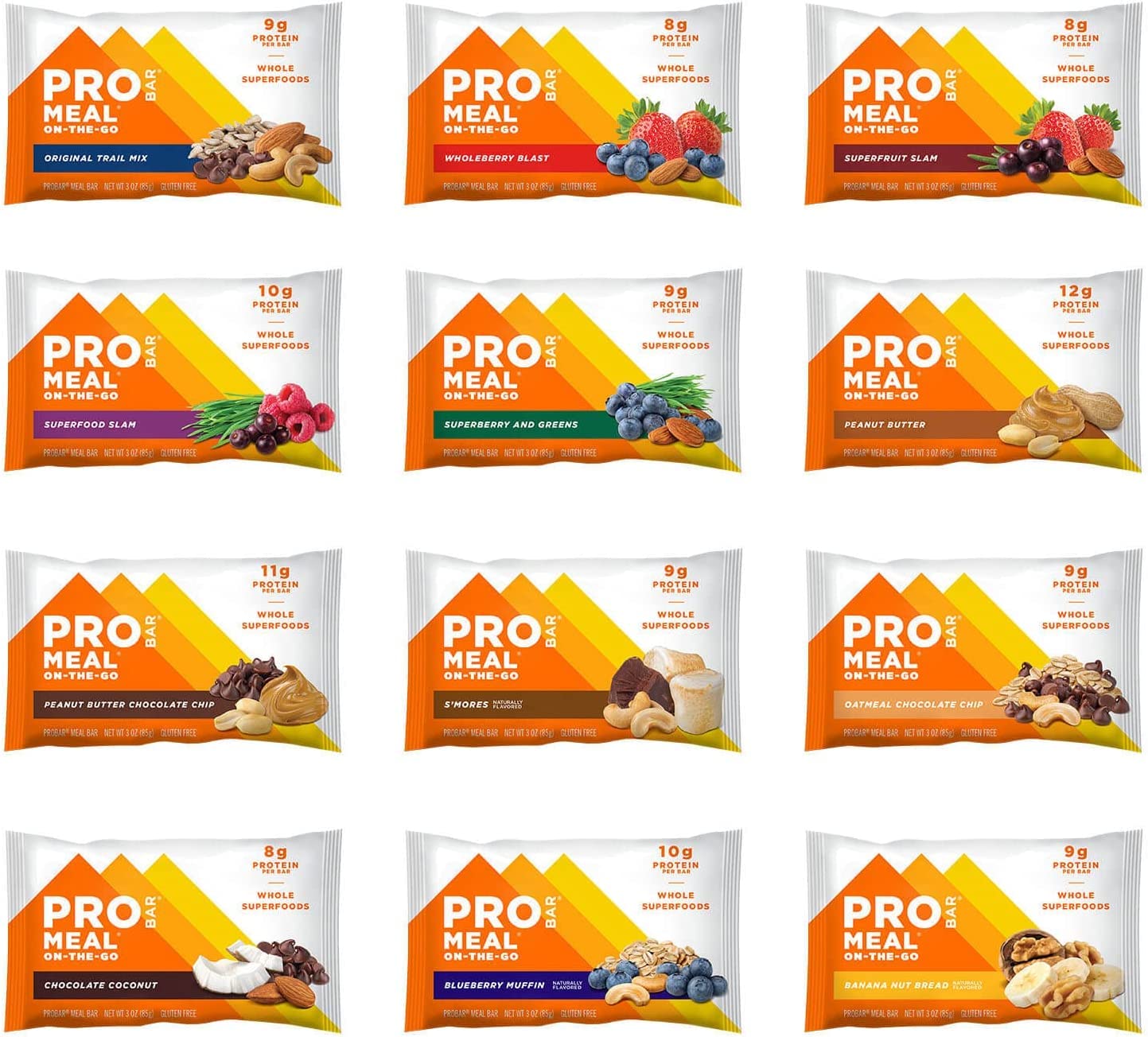 Q: What flavors are included in the PROBAR 12 Flavor Variety Pack?A: The PROBAR 12 Flavor Variety Pack includes flavors such as Peanut Butter Chocolate Chip, Superfood Slam, Chocolate Coconut, Whole Berry Blast, Super Berry and Greens, Super Fruit Slam, Original Trail Mix, Peanut Butter, Almond Crunch, Koka Moka, Oatmeal Chocolate Chip, and Banana Nut Bread.