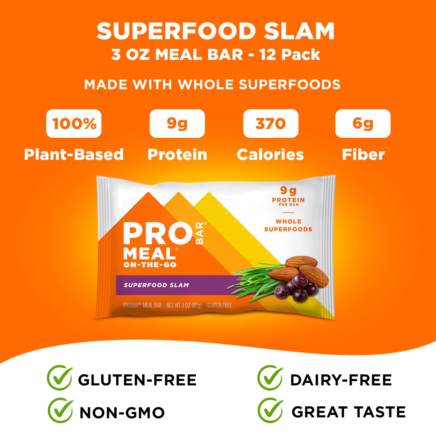 PROBAR - MEAL Bar, Superfood Slam, Non-GMO, Gluten-Free, Healthy, Plant-Based, Whole-Food Ingredients, Natural Energy (12 Count)