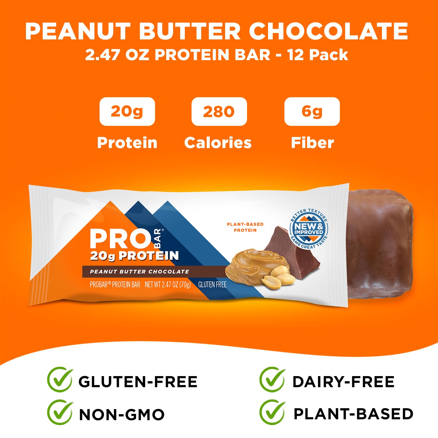 PROBAR - PROTEIN Bar, Peanut Butter Chocolate, Non-GMO, Gluten-Free, Healthy, Plant-Based Whole Food Ingredients, Natural Energy