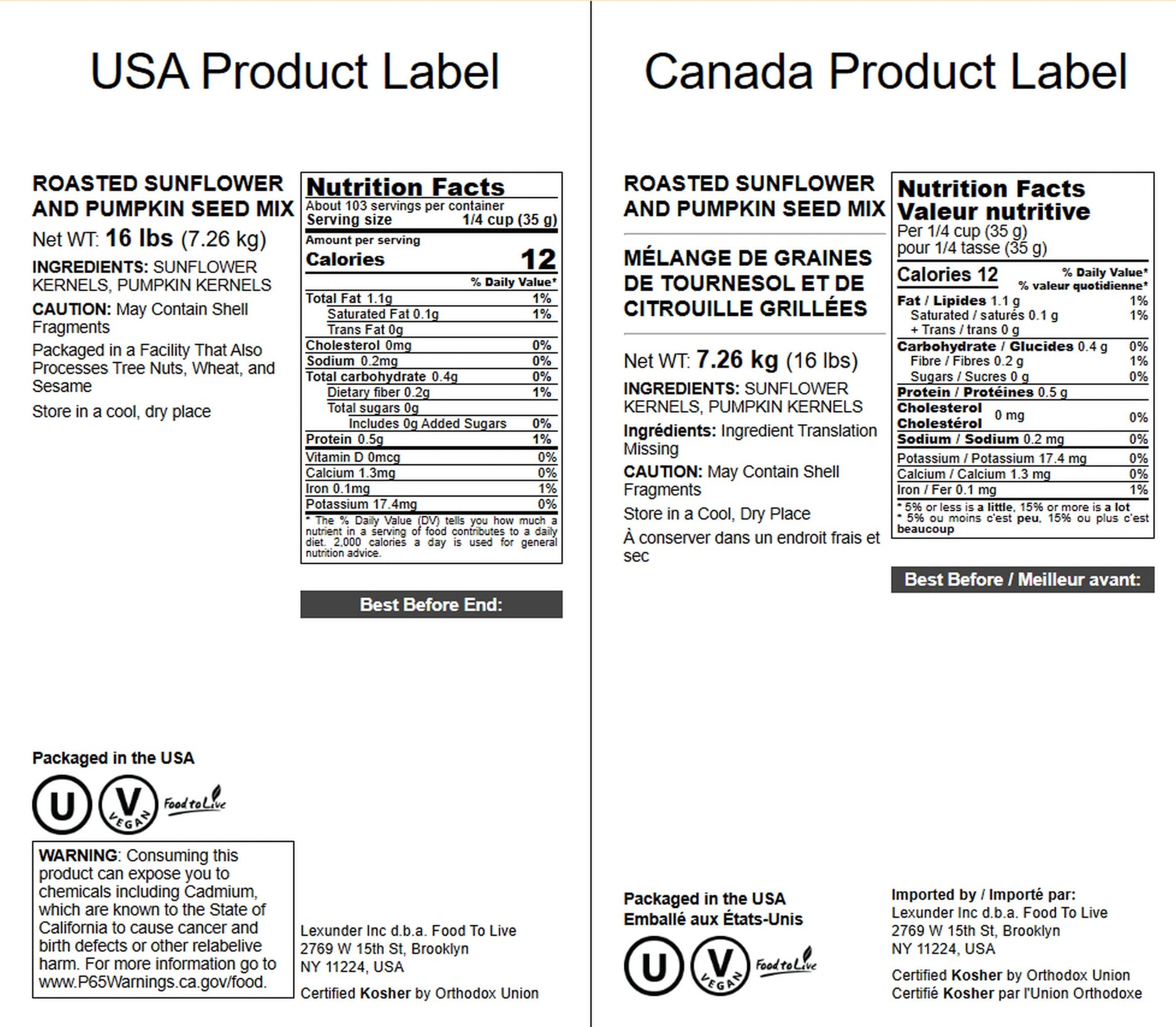 - Q: What are the health benefits of the Food to Live Dry Roasted Sunflower and Pumpkin Seed Mix? A: This mix is rich in protein, healthy fats, and essential vitamins and minerals, making it a nutritious snack option. Sunflower seeds contain vitamin E, magnesium, and selenium, while pumpkin seeds are an excellent source of zinc and antioxidants, contributing to overall health.
