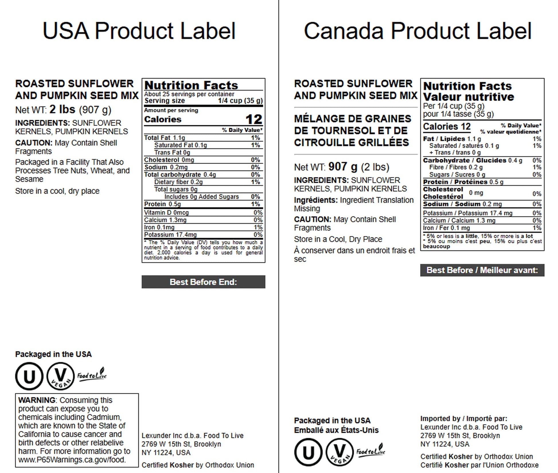 - Q: What are the health benefits of the Food to Live Dry Roasted Sunflower and Pumpkin Seed Mix? A: The Food to Live Dry Roasted Sunflower and Pumpkin Seed Mix is rich in protein, making it an excellent snack for those looking to boost their protein intake. Additionally, sunflower and pumpkin seeds are packed with essential vitamins and minerals, including magnesium, zinc, and vitamin E, which support overall health and wellness.