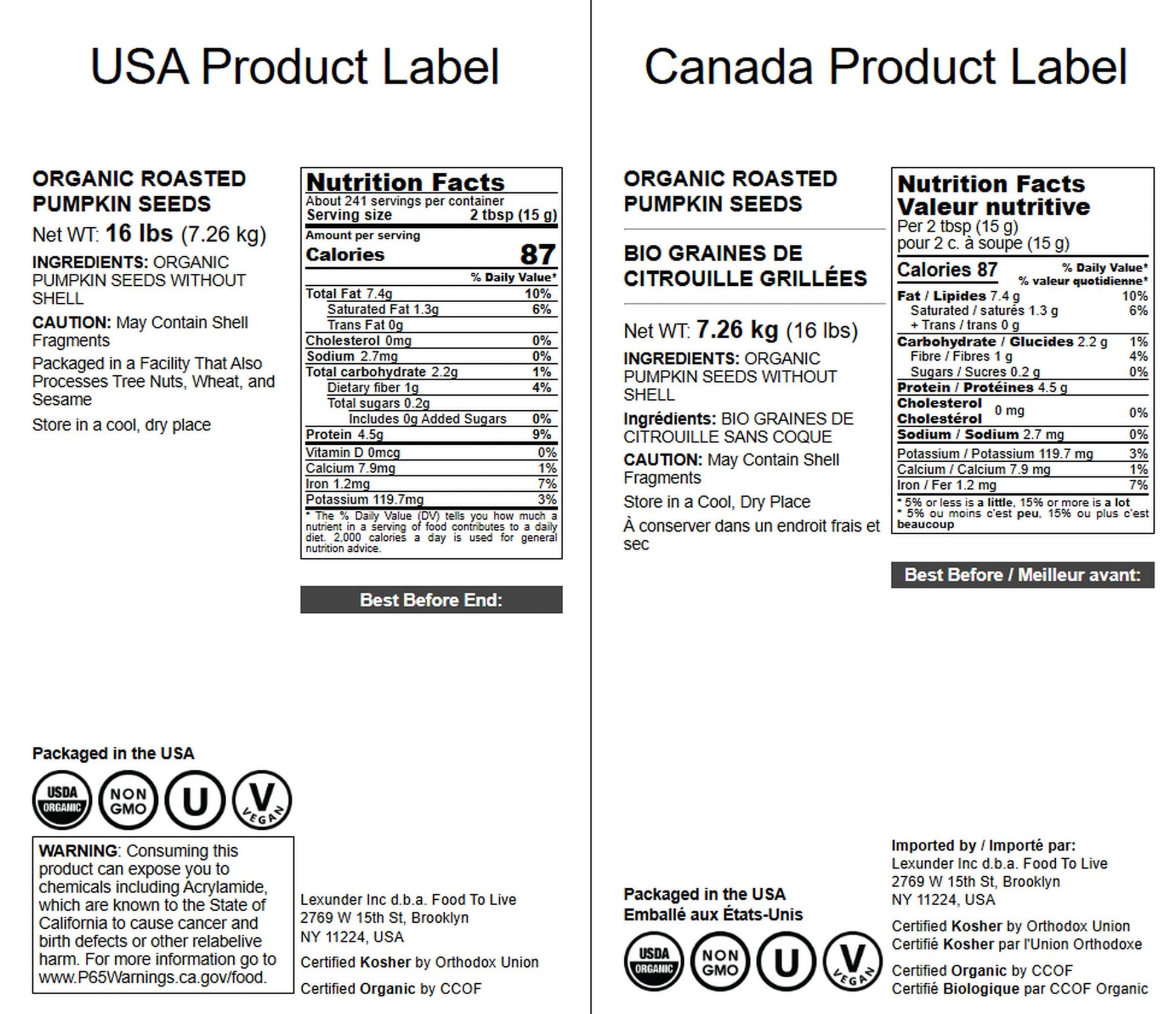 • Q: What are the nutritional benefits of Food to Live Organic Dry Roasted Pumpkin Seed Kernels? A: Food to Live Organic Dry Roasted Pumpkin Seed Kernels are packed with beneficial nutrients, including high levels of protein, dietary fiber, essential fatty acids, and vitamins such as A, E, K, B6, and Folate. They also contain important minerals like Potassium, Phosphorus, Magnesium, Zinc, Copper, and Calcium, making them a highly nutritious snack option.