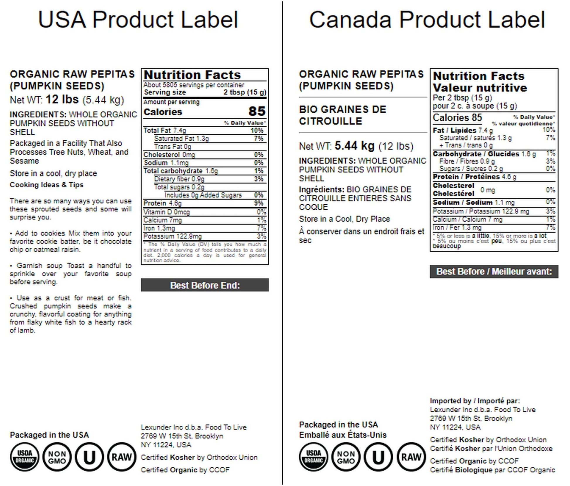 - Q: ¿Son las semillas de calabaza de Food to Live libres de toxinas? A: Sí, las semillas de calabaza de Food to Live son procesadas en instalaciones certificadas orgánicas y se garantizan libres de toxinas y contaminantes peligrosos, asegurando un producto seguro y saludable.