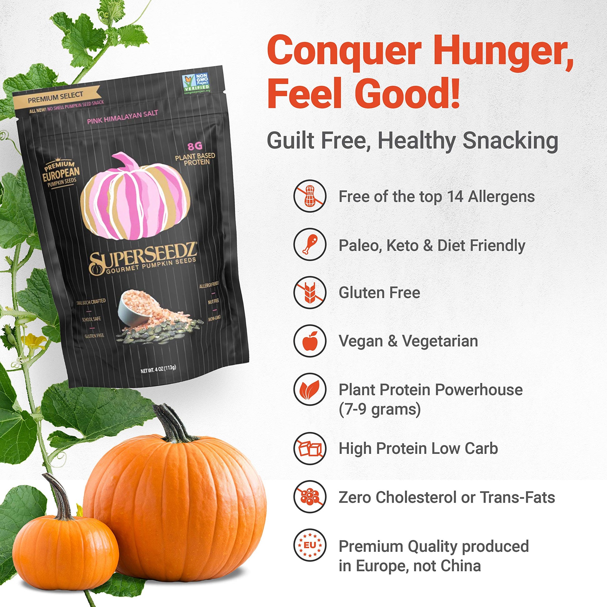 Key Features:- Premium pumpkin seeds sourced from Europe, ensuring well-made and flavor.