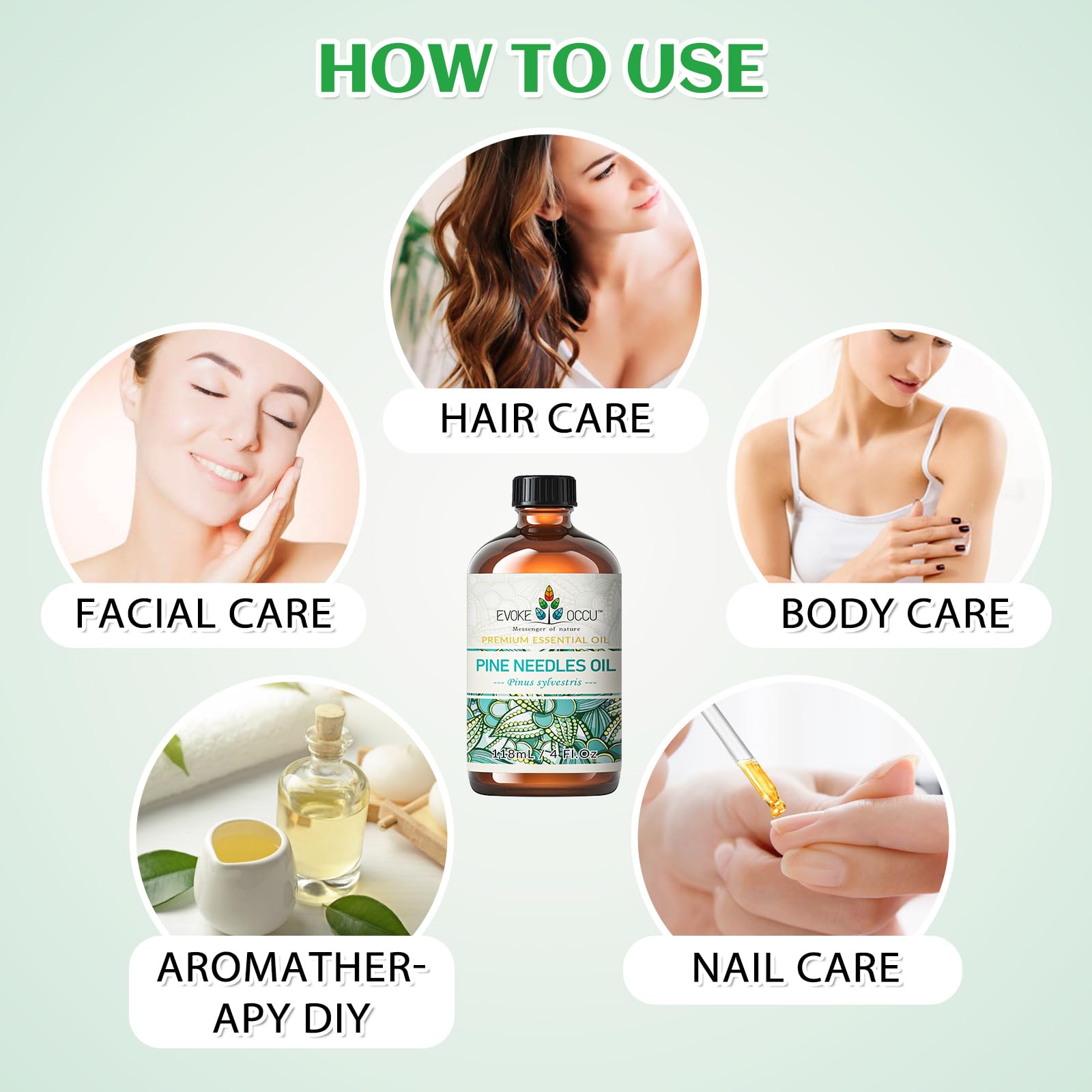Q: What are the benefits of using EVOKE OCCU Pine Needle Essential Oil?A: EVOKE OCCU Pine Needle Essential Oil offers various benefits such as air purification when diffused, relief for sore muscles when blended with carrier oils, and versatility for use in candle and soap making.