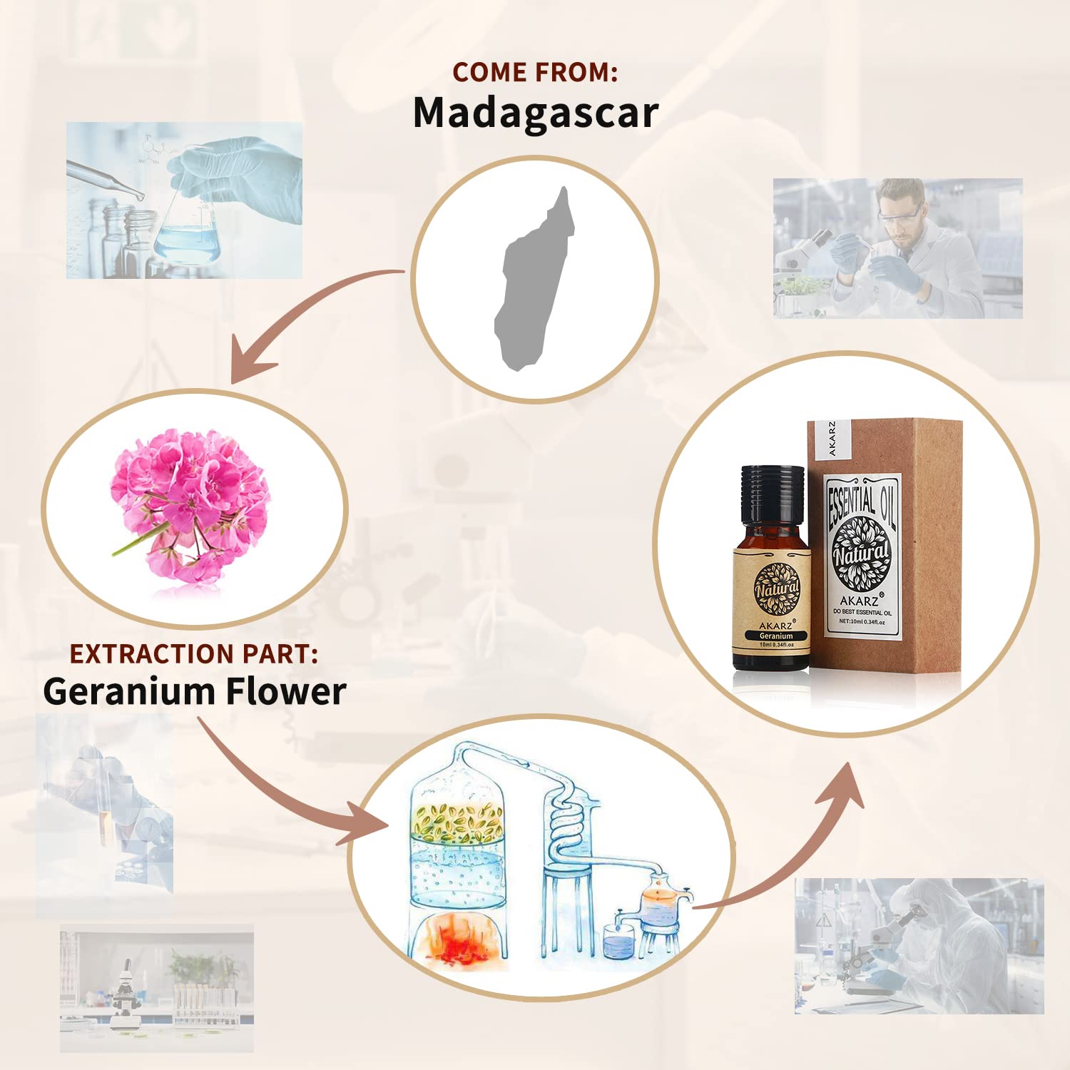 - Q: How should I store AKARZ Geranium Essential Oil to maintain its quality? A: To preserve the quality of AKARZ Geranium Essential Oil, store it in a cool, dark place away from direct sunlight. The brown glass bottle helps protect the oil from UV rays, ensuring its integrity and longevity.