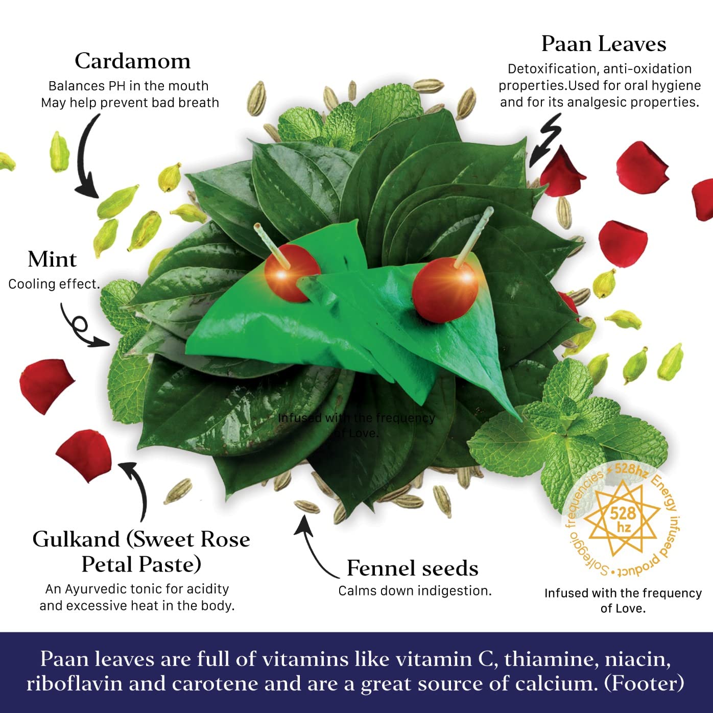 - Q: What are the key ingredients in Aryaa Organic Calcutta Paan? A: Aryaa Organic Calcutta Paan features a unique blend of ground rose petal paste, cardamom, and fennel seeds, creating a delightful fusion of flavors that is both sweet and aromatic.