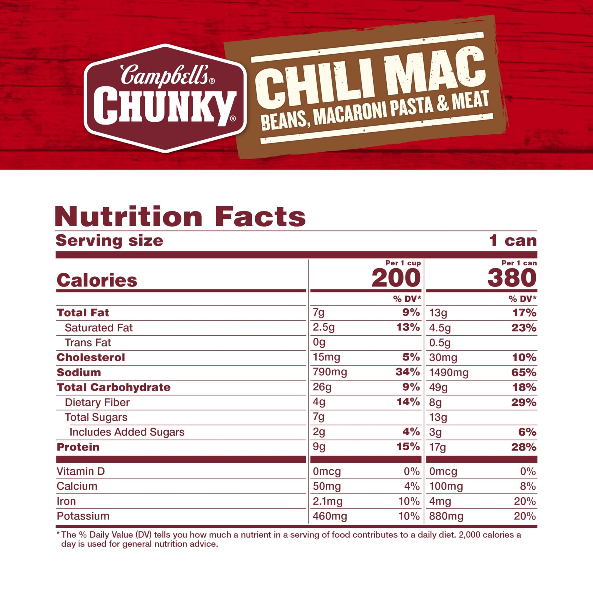 Campbells Chunky Chili Mac isnt just tasty-it's made to work as hard as you do. With never-ending big flavors and bold ingredients, this comfort food classic is capable of fueling even the heartiest appetite. This ready-to-eat soup is crafted with savory ground beef, beans and macaroni tossed with tangy tomatoes. Each can has 17 grams of protein. It Fills You Up Right. Just pop this chili soup in a microwave-safe bowl, heat and enjoy. Or, warm it over the campfire on your outdoor adventures. Whether youre looking for quick and easy to microwave soups for home or something to take on the go, Campbells has you covered. Take on the great outdoors with Campbells Chunky Chili Mac-Soup That Eats Like a Meal.