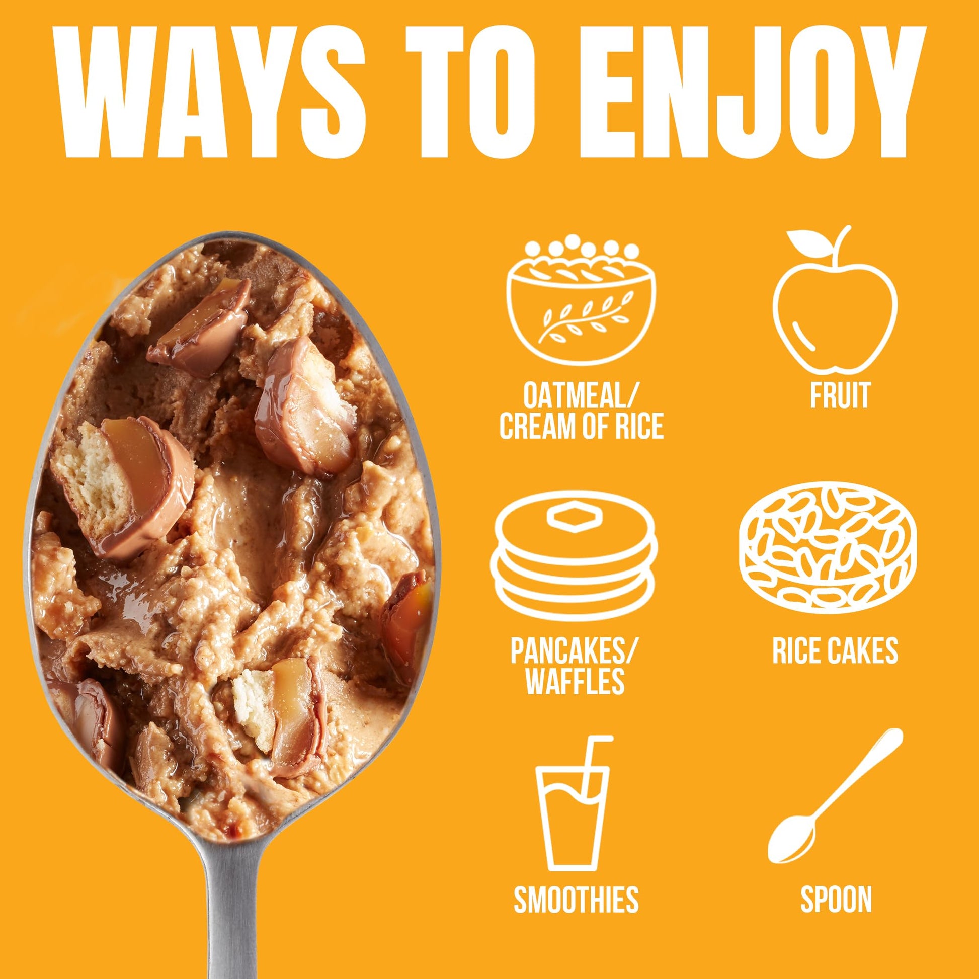 - Q: What makes Fit Butters Chocolate Caramel Crunch Bar Cashew Butter different from other nut butters? A: Fit Butters Chocolate Caramel Crunch Bar Cashew Butter is unique because it features real chocolate, caramel, and actual Twix pieces, providing an unmatched flavor experience. Unlike many competitors, we use dry roasted cashews instead of oil-roasted nuts, ensuring better taste and texture.