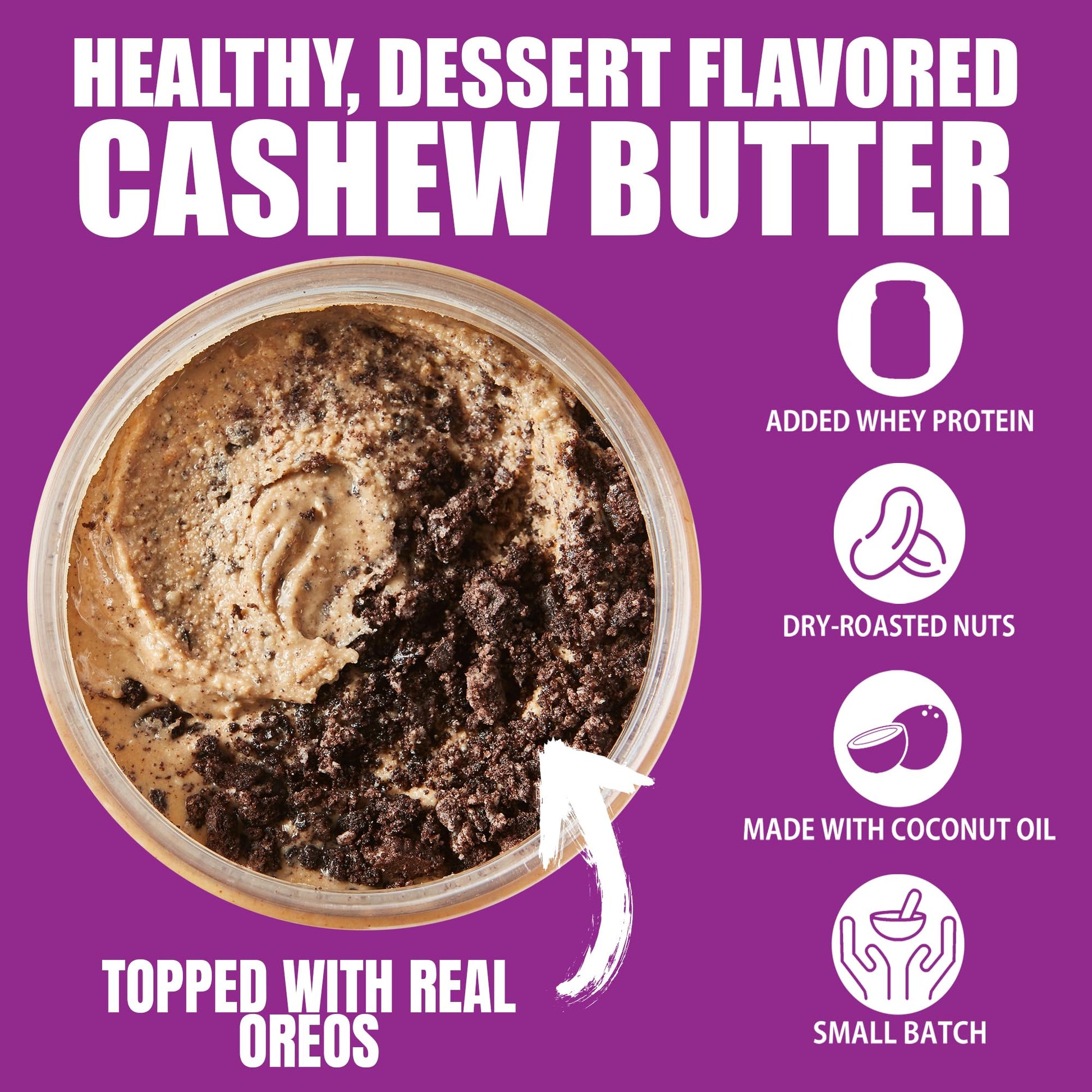 - Q: What sets Rory's Cookie Monster Madness apart from other nut butters? A: Rory's Cookie Monster Madness stands out due to its unique cookies and cream flavor, the inclusion of real Oreos, and the use of dry roasted cashews instead of oil-roasted nuts. Additionally, it contains whey protein isolate for a complete protein source, giving it a richer flavor and healthier profile.