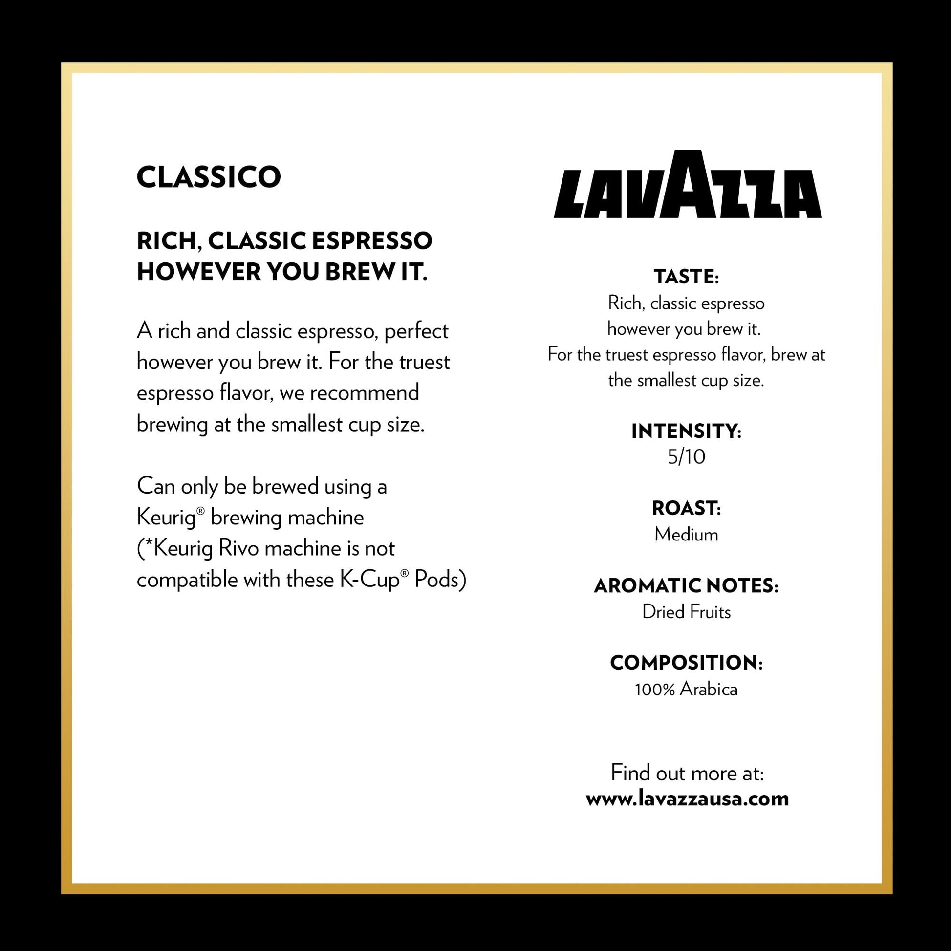 Lavazza Espresso is a blend made from 100 % specially selected Arabica beans creates a full-bodied, intensely aromatic flavor that makes it the ultimate espresso coffee to look forward to at any time of day. This blend creates a delightfully sippable cup of coffee quickly using a Keurig K-cup brewer.