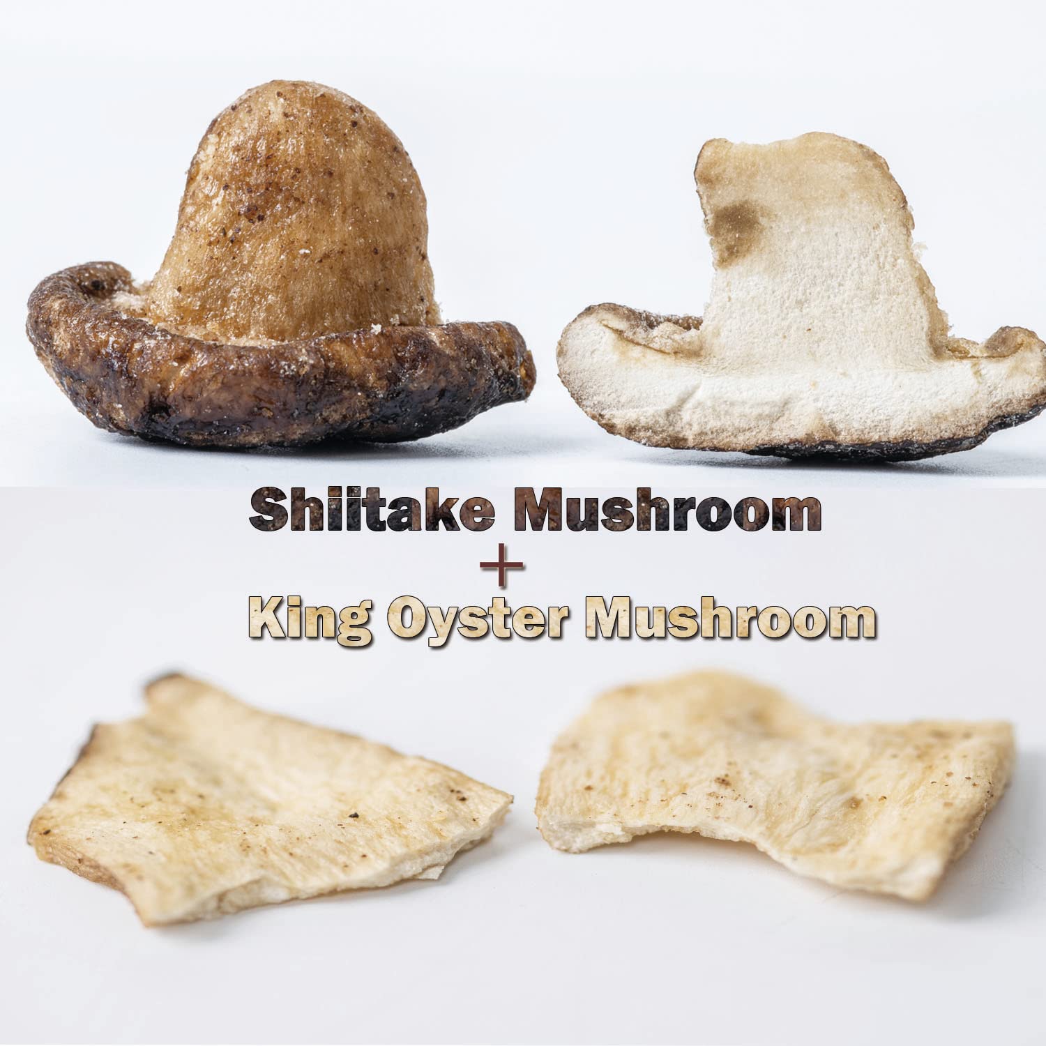 - Q: What are VIGOROUS MOUNTAINS Mushroom Chips made of? A: VIGOROUS MOUNTAINS Mushroom Chips are made from handpicked shiitake and king oyster mushrooms, ensuring a nutrient-rich and flavorful snack. The chips are produced using a vacuum-cooking process that preserves the natural taste and nutrients without added oils or preservatives.