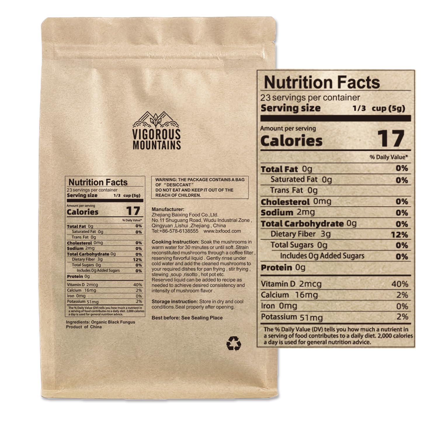 - Q: How do VIGOROUS MOUNTAINS mushrooms differ from other types of dried mushrooms? A: VIGOROUS MOUNTAINS Organic Dried Edible Black Fungus Wood Ear Mushrooms stand out due to their rigorous selection and processing methods, ensuring high cleanliness and quality. Unlike many other dried mushrooms, they are specifically known for their unique rubbery texture and ability to absorb flavors, making them versatile for various culinary applications.