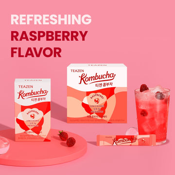 Teazen Raspberry Kombucha Tea, Hydration Drink Mix, Sugar Free, Live