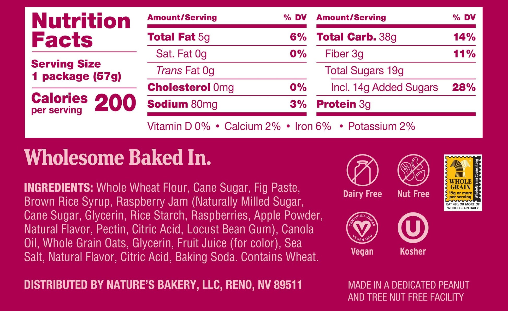 Natures Bakery Whole Wheat Fig Bars, Raspberry, Real Fruit, Vegan, Non-Gmo, Snack Bar, 1 Box With 12 Twin Packs (12 Twin Packs)