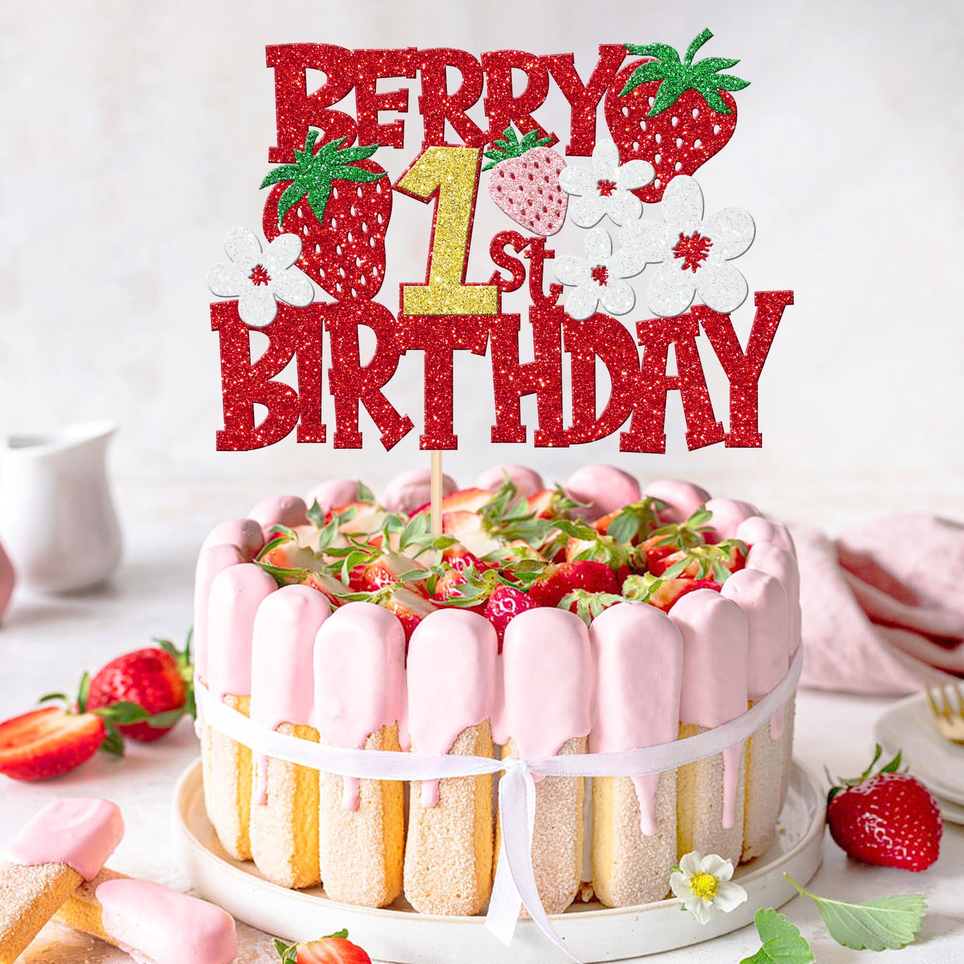 - Q: What material is the Berry 1st Birthday Cake Topper made from? A: The cake topper is crafted from high-quality 300-gram glitter paper card stock, which is thick, sturdy, and designed to resist deformation and fading.