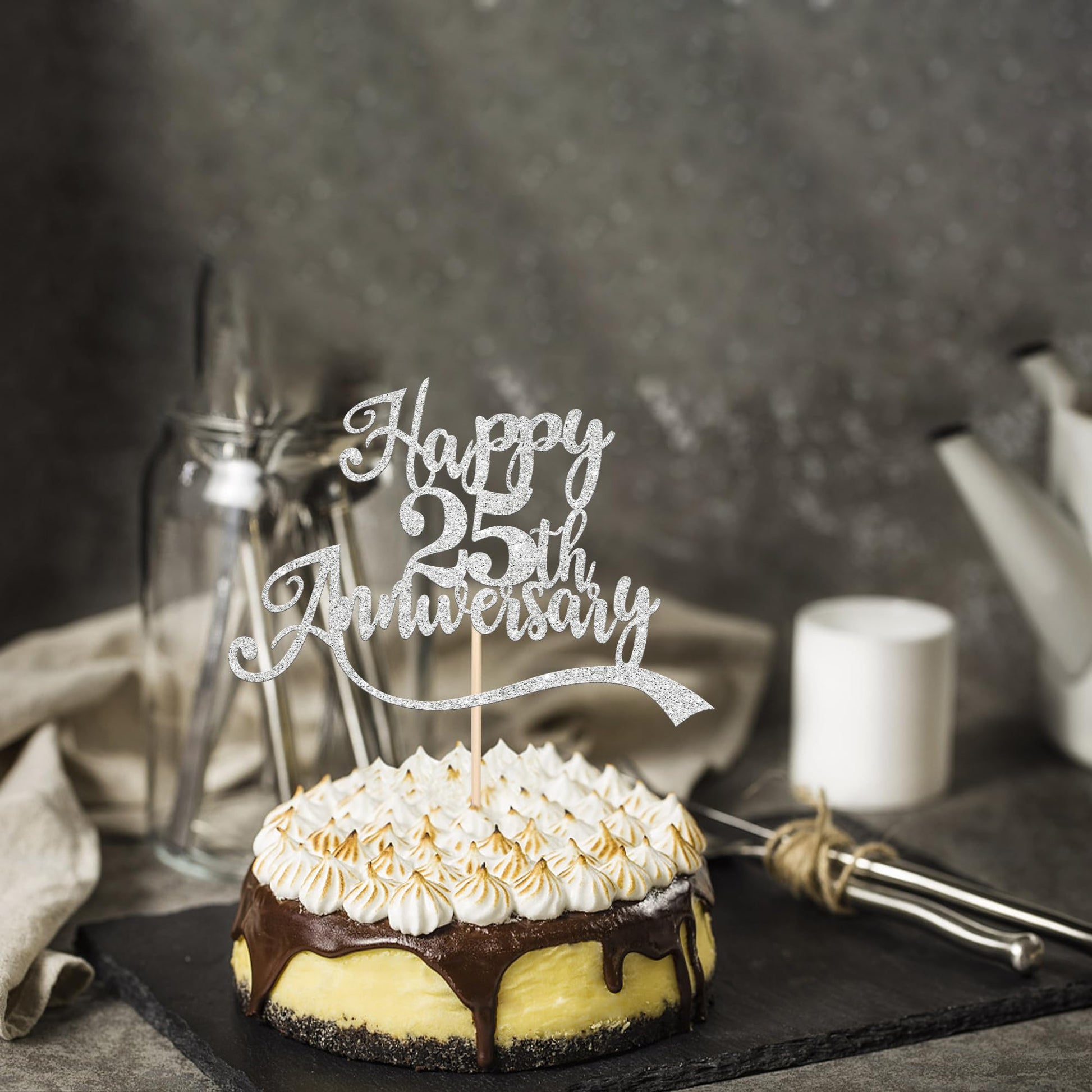 Happy 25Th Anniversary Theme Party Cake Topper Decorations Perfect For Wedding 25Th Anniversary Theme Party, Company 25Th Anniversary Theme,25Th Birthday Party Cake Decorations Supplies. Pack Of 1 Pcs,1 Pcs / Card +Opp Bag The Size Is W 6 Inch * H 7.7 Inch / W 15.3 Cm * H 19.6 Cm ( With Stick ) Made Of High Quality Glitter Paper Card Stock And Food Grade Sticks,Thick And Thick And Sturdy. The Cake Topper Is Single Glitter, The Back Is White, And They Are Intended For Decoration Only, Please Do Not Put Them In Oven Or Microwave. If The Item You Received Has Any Defects, Please Contact Us For Refund.We Will Deal With It Within 24 Hours.