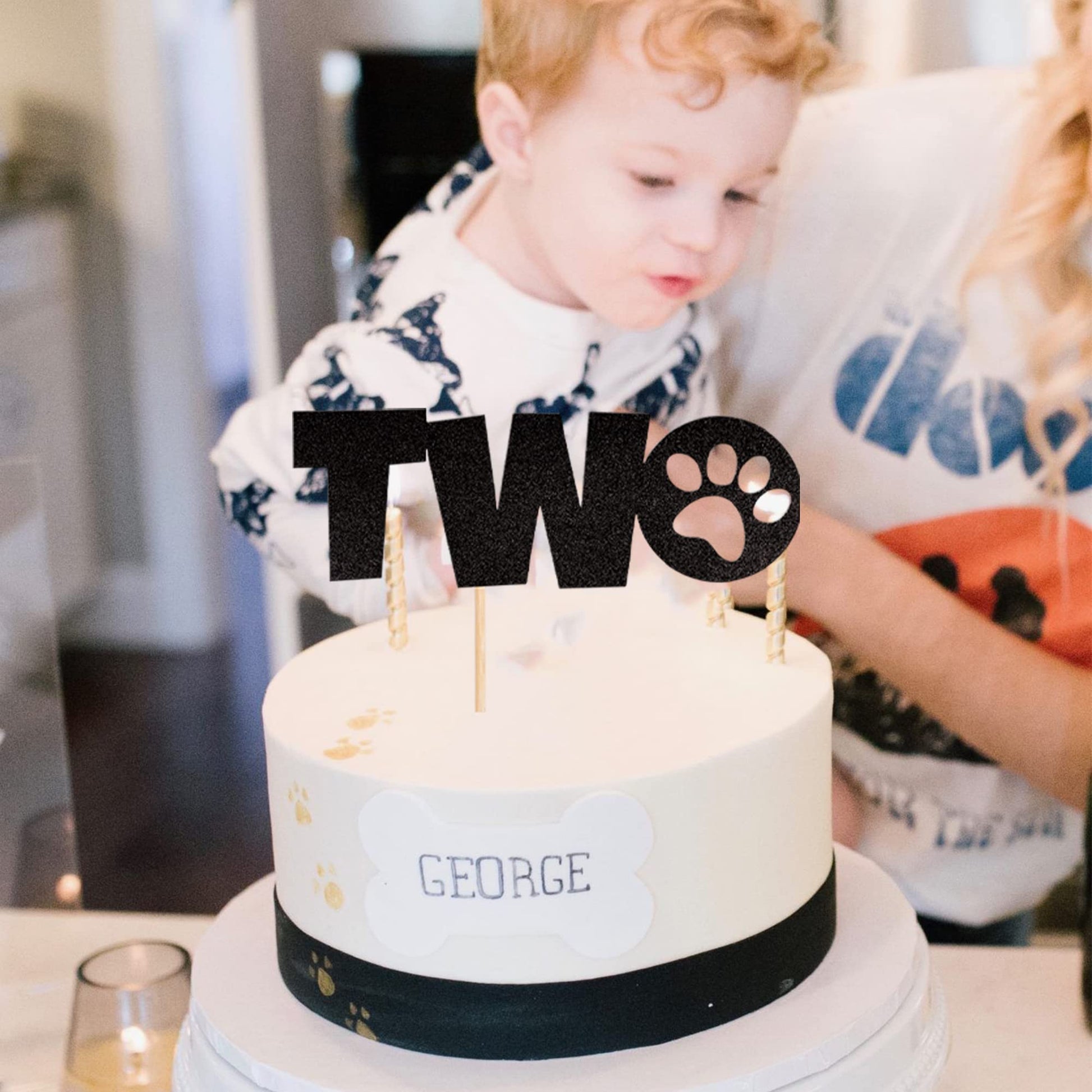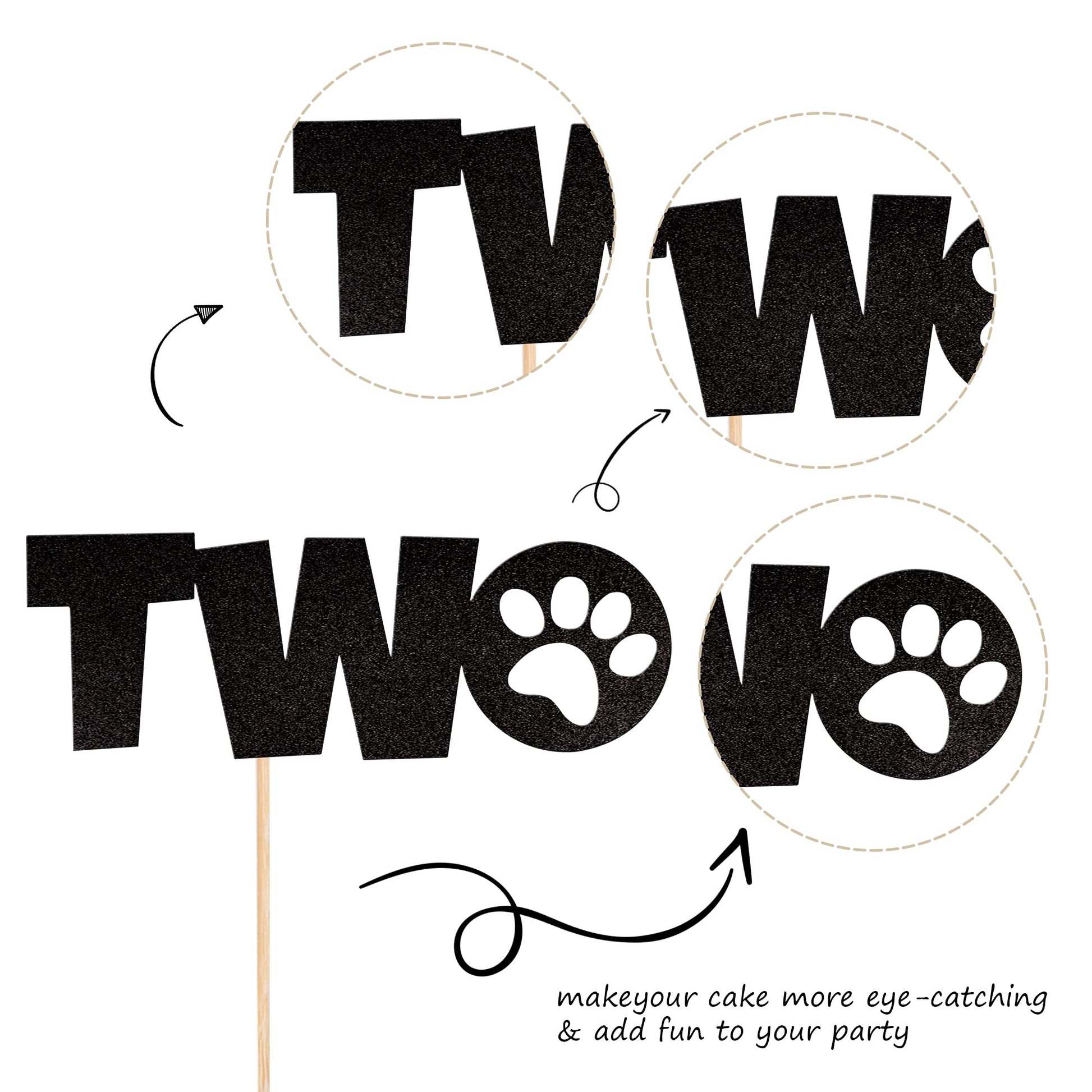 1 Pcs Two Cake Topper Black Glitter Dog Paw 2 Years Old Birthday Cake Pick For Puppy Dog Let'S Pawty Theme Kids Boys Girls 2Nd B