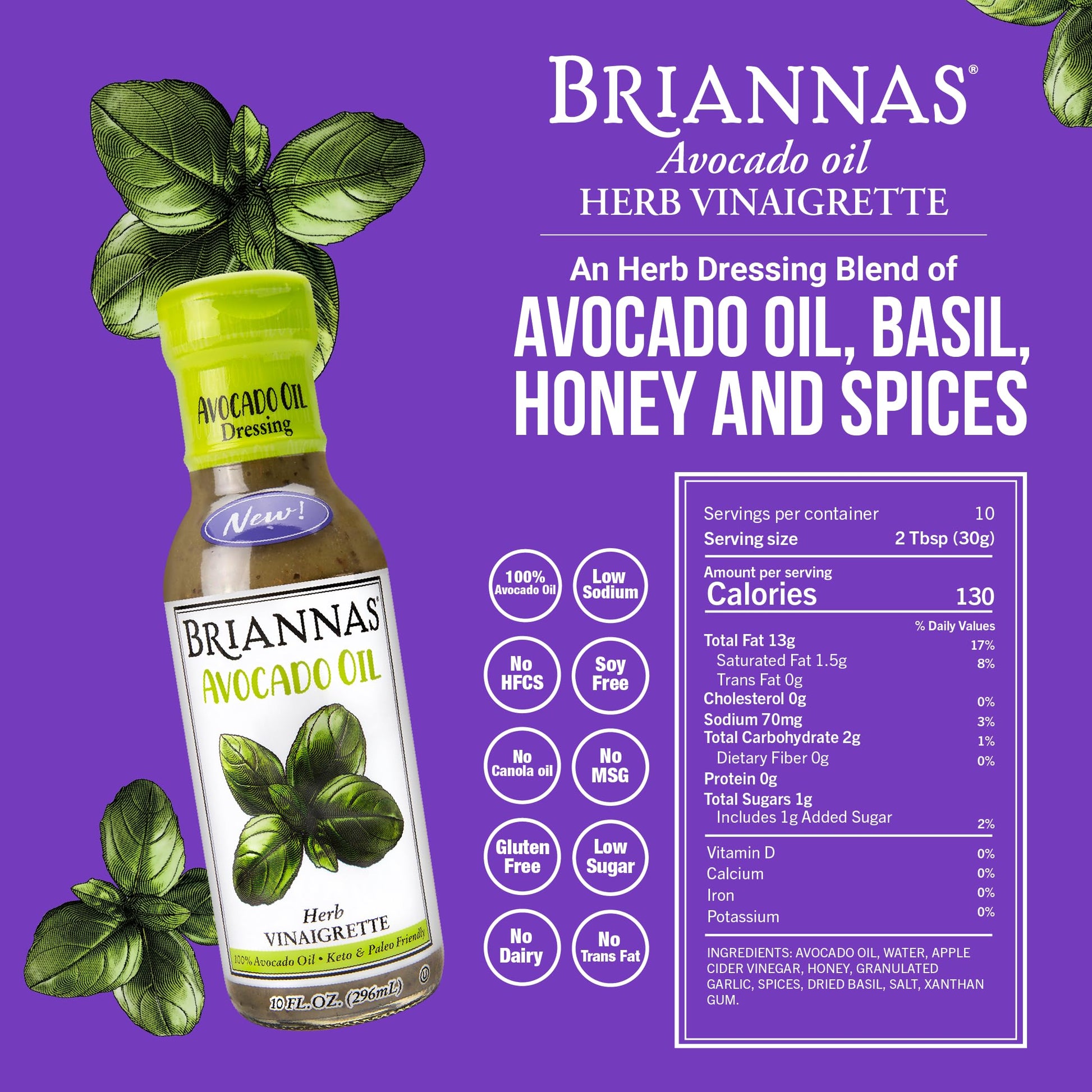 10 fl oz BRIANNAS - Avocado Oil Dressing Variety Pack - Dairy-Free Garden Ranch, Classic Balsamic Vinaigrette, & Herb Vinaigrette - Made with Premium Ingredient - 10 oz. Bottles - 3 Pack