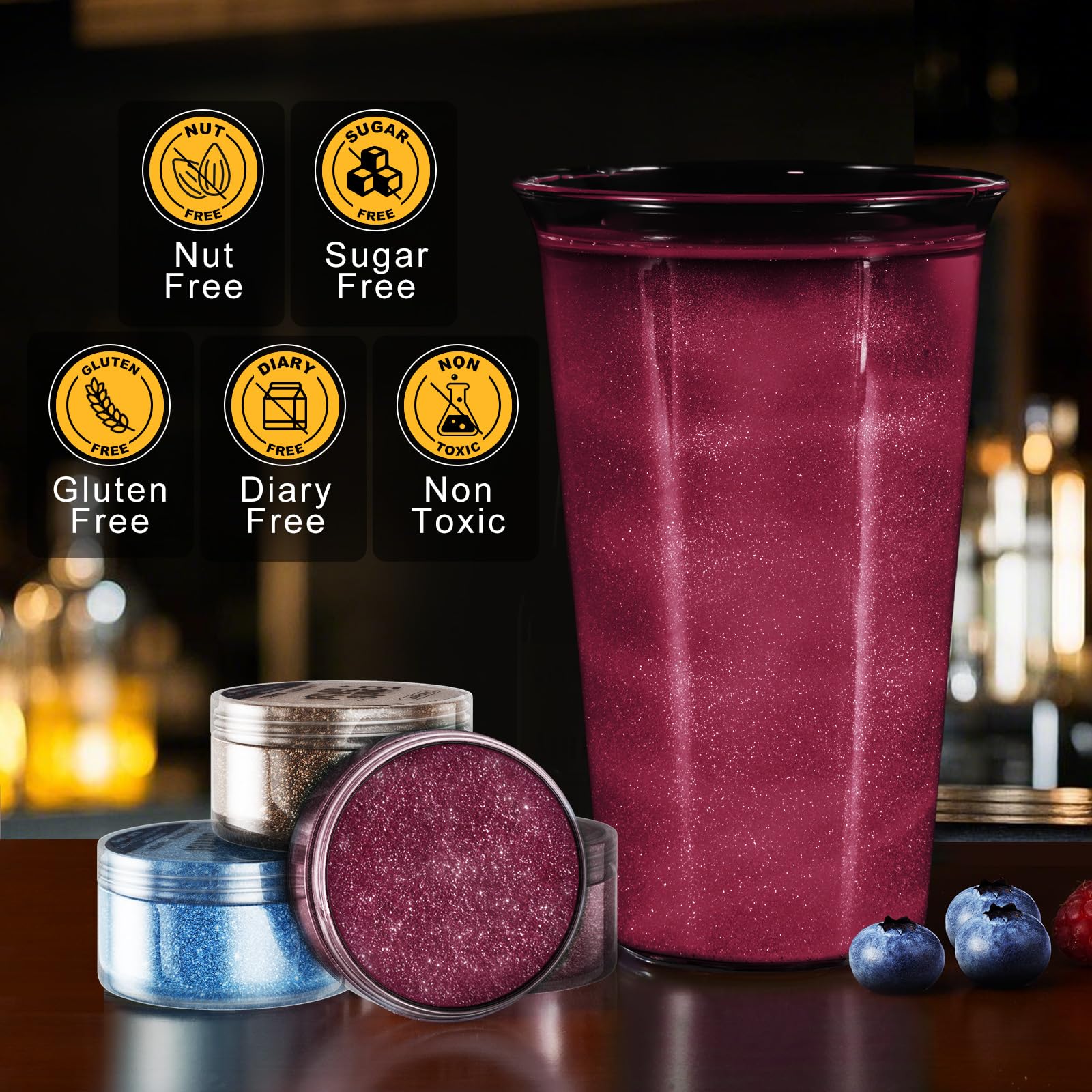 Q: Is the Red Edible Glitter safe for consumption?A: Yes, the Red Edible Glitter is made from 100% food-grade ingredients and is both Kosher and Halal certified, ensuring it is safe for consumption in all food and drink applications without altering the original flavor.