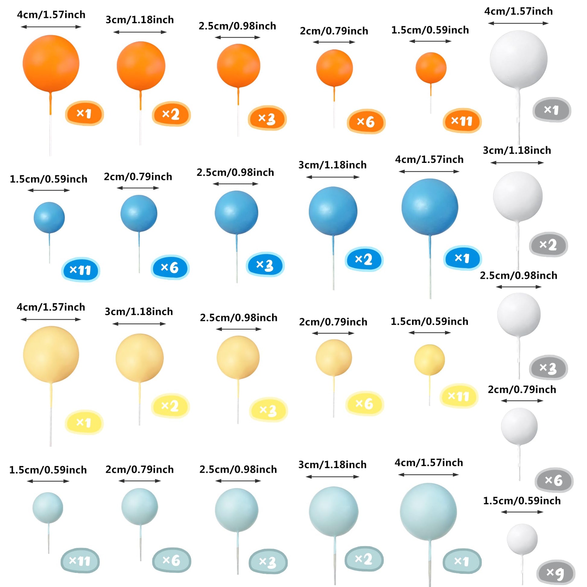 Features And Purposes These Versatile Cake Ball Picks Can Be Used On All Sorts Of Sweet Treats, From Fluffy Cakes To Bite-Sized Cupcakes. Featuring A Simple Yet Charming Ball Design, These Cake Picks Are The Perfect Addition To Any Party Or Celebration. Made From High-Quality Materials, These Ball Cake Toppers Are Built To Last And Easy To Use. Just Pop Them Onto The Top Of Your Baked Goods And Watch As They Instantly Take On A Cheerful, Festive Feel. With A Range Of Colors To Choose From, You Can Customize Your Cakes And Cupcakes To Match Any Theme Or Occasion Specification Size- The Ball Cake Topper Has 5 Sizes, Including 0.59 Inch, 0.79 Inch, 0.98 Inch, 1.18 Inch And 1.57 Inch Material- Foam And Latex Wire Color- Orange And Blue Package Includes Each Package Comes With 113 Pcs Of Ball Cake Toppers