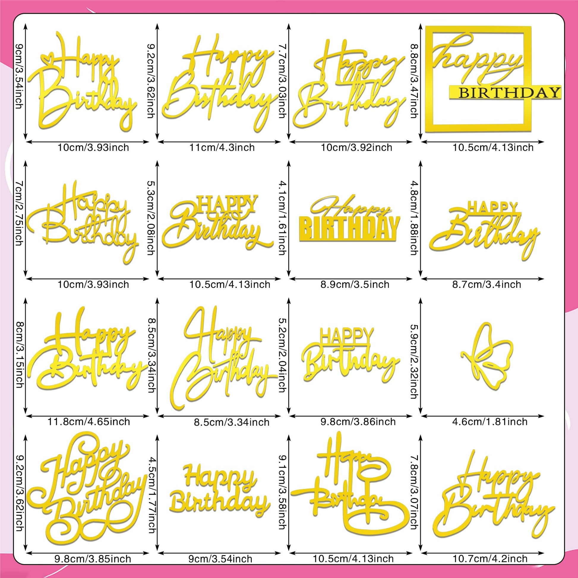 Features And Purposes The Happy Birthday Cake Toppers Kit Are Made Of Acrylic. They Are Great Birthday Cake Toppers, Happy Birthday Cake Toppers To Make The Cake Looks Much More Different. The Cupcake Picks Are Perfect Party Supplies, Birthday Party Supplies, Luau Party Supplies For Cake, Ice Cream, Cookies, Fruits, Brownies Or Other Party Decorating. The Cute Cupcake Toppers Also Can Be Used As Cupcake Picks, Appetizer Picks, Fruit Picks, Or Party Picks. Specification Cake Topper Happy Birthday Gold Happy Birthday Cake Topper Size: Happy Birthday Cake Toppers Is 3.93X3.54 Inches (W X H).