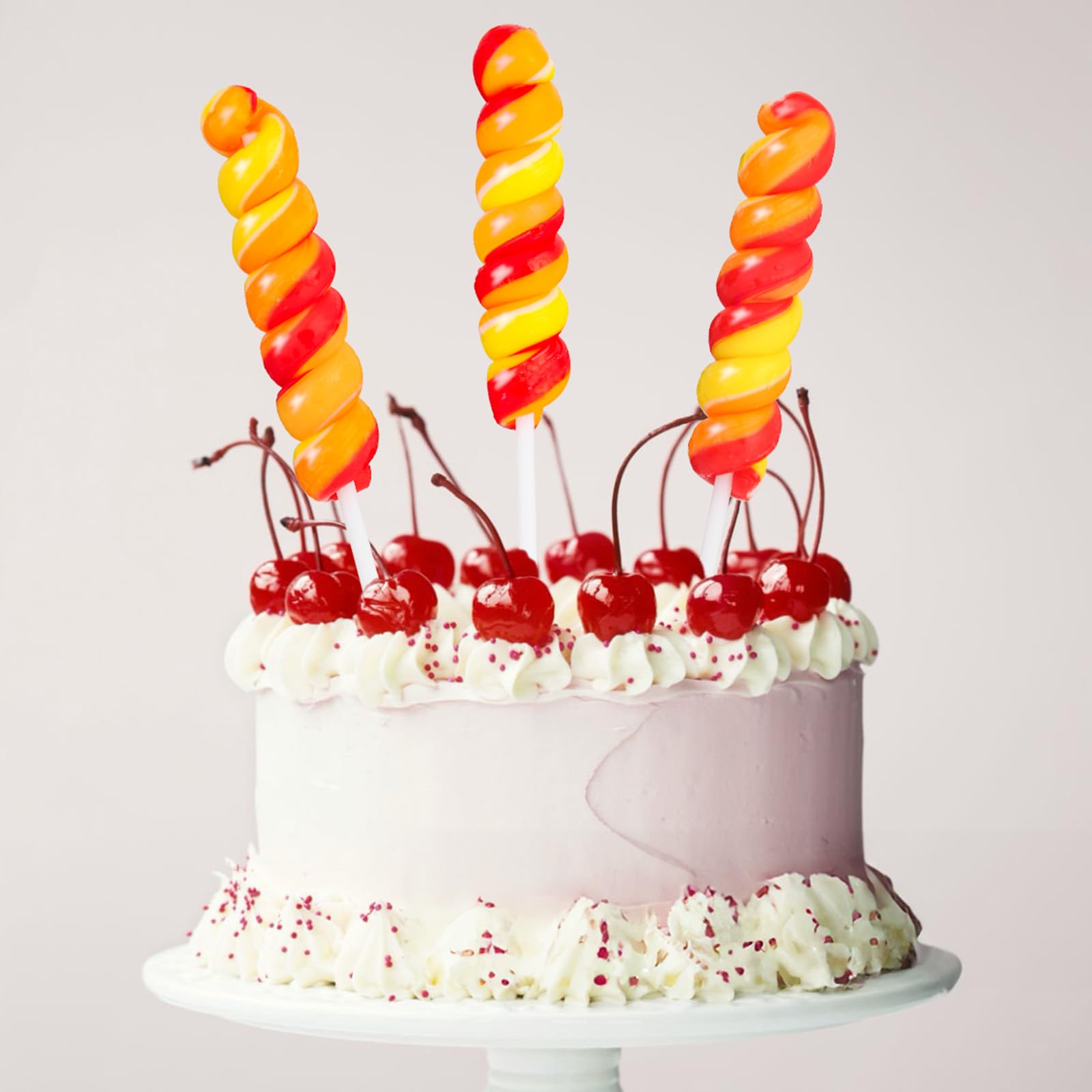 Q: What flavors do the Twisty and Swirl Lollipops come in?A: The 18 Pack Cherry Red and Yellow Twisty and Swirl Lollipops are designed with a classic cherry flavor that is both sweet and tantalizing, appealing to both children and adults.