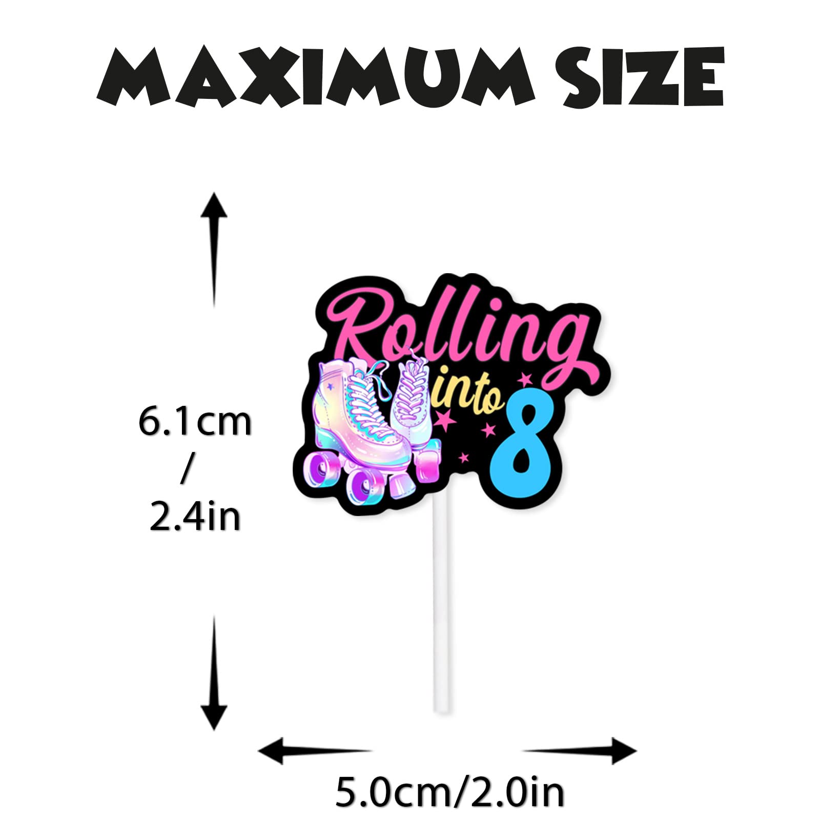 Q: What are the dimensions of the cupcake toppers?A: Each cupcake topper measures approximately 2.4 x 2.0 inches, making them perfect for most standard-sized cupcakes.