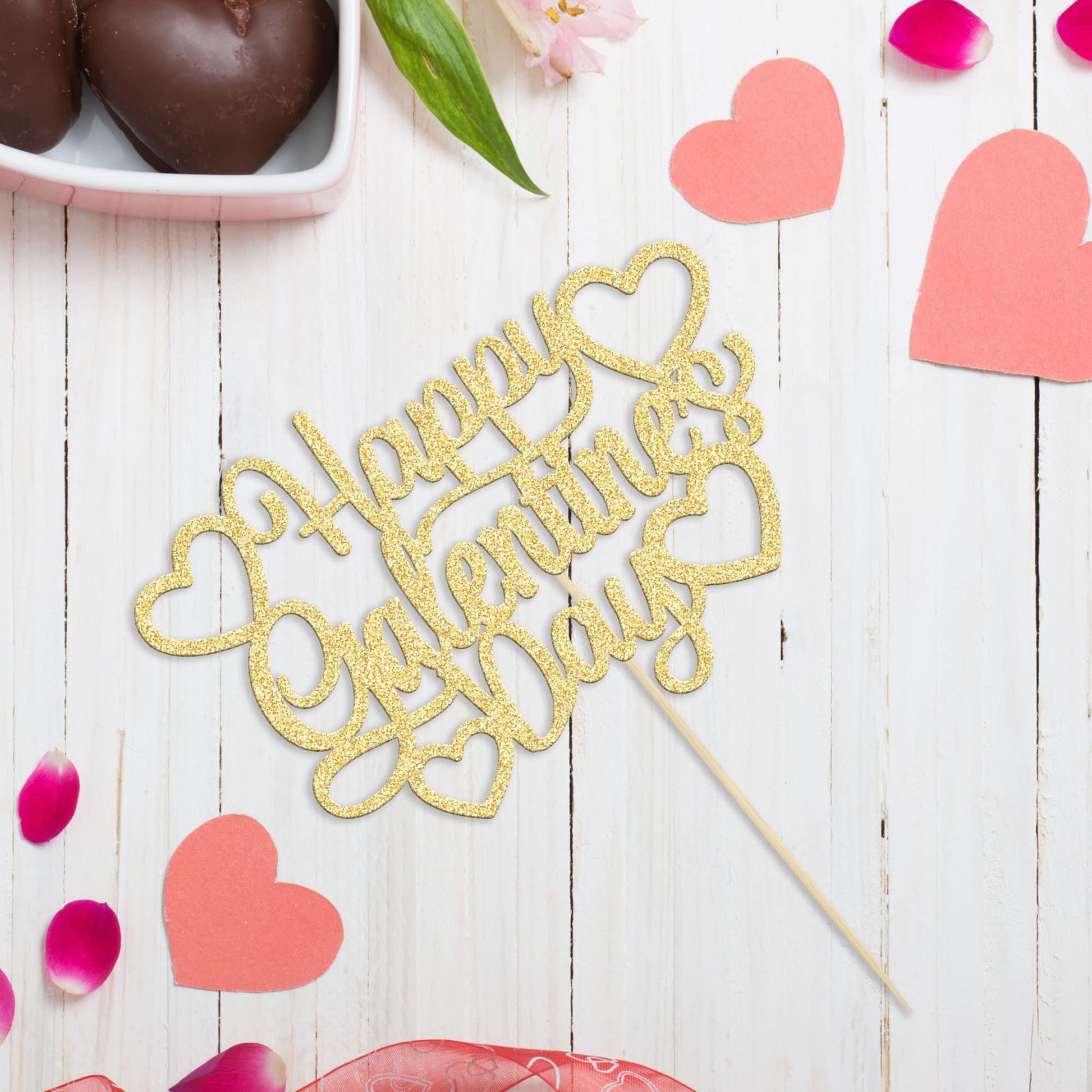 Q: What material is the Happy Valentine's Day Cake Topper made of?A: The Happy Valentine's Day Cake Topper is made of 300 gram glitter card stock and features a 100% food grade bamboo stick, ensuring durability and an attractive look.