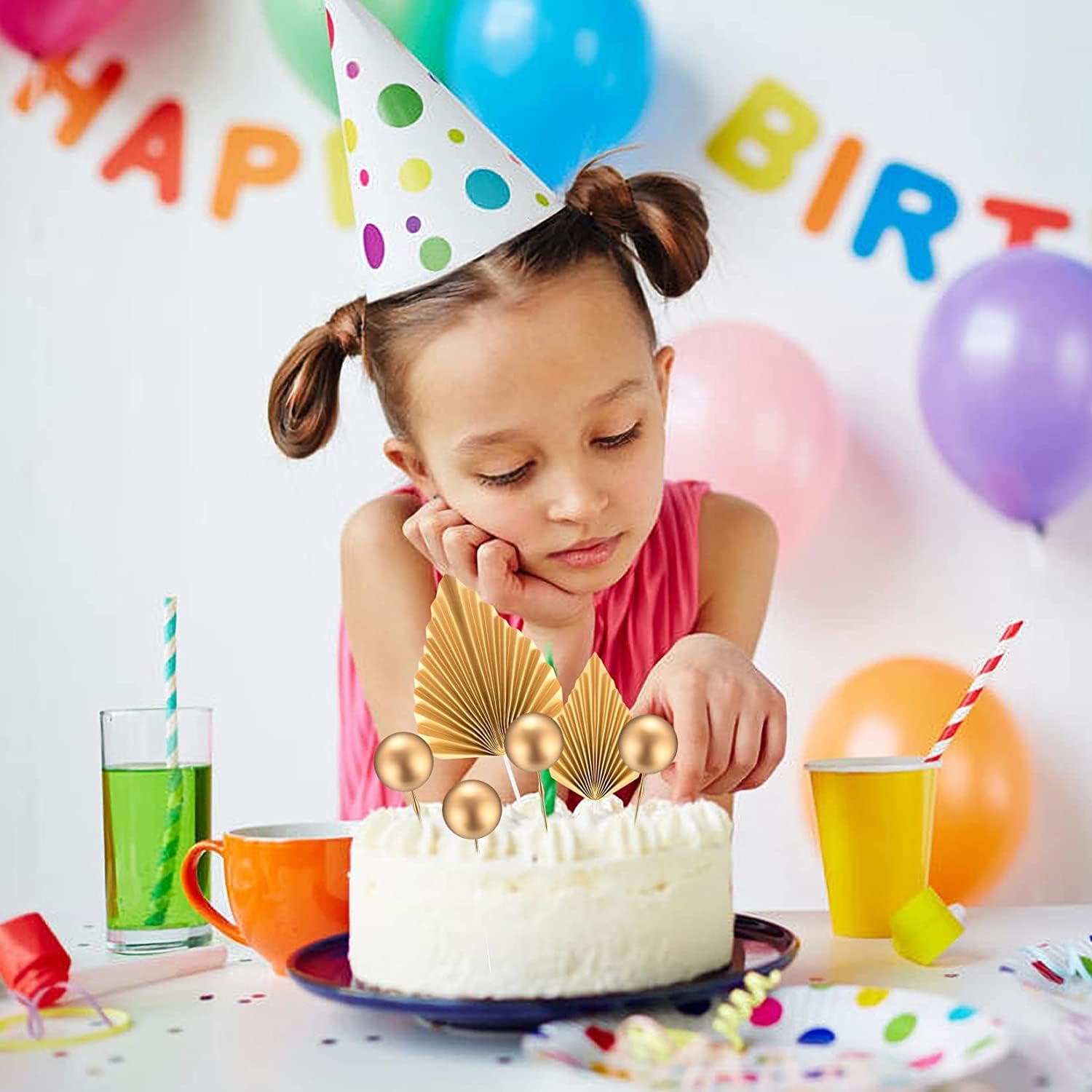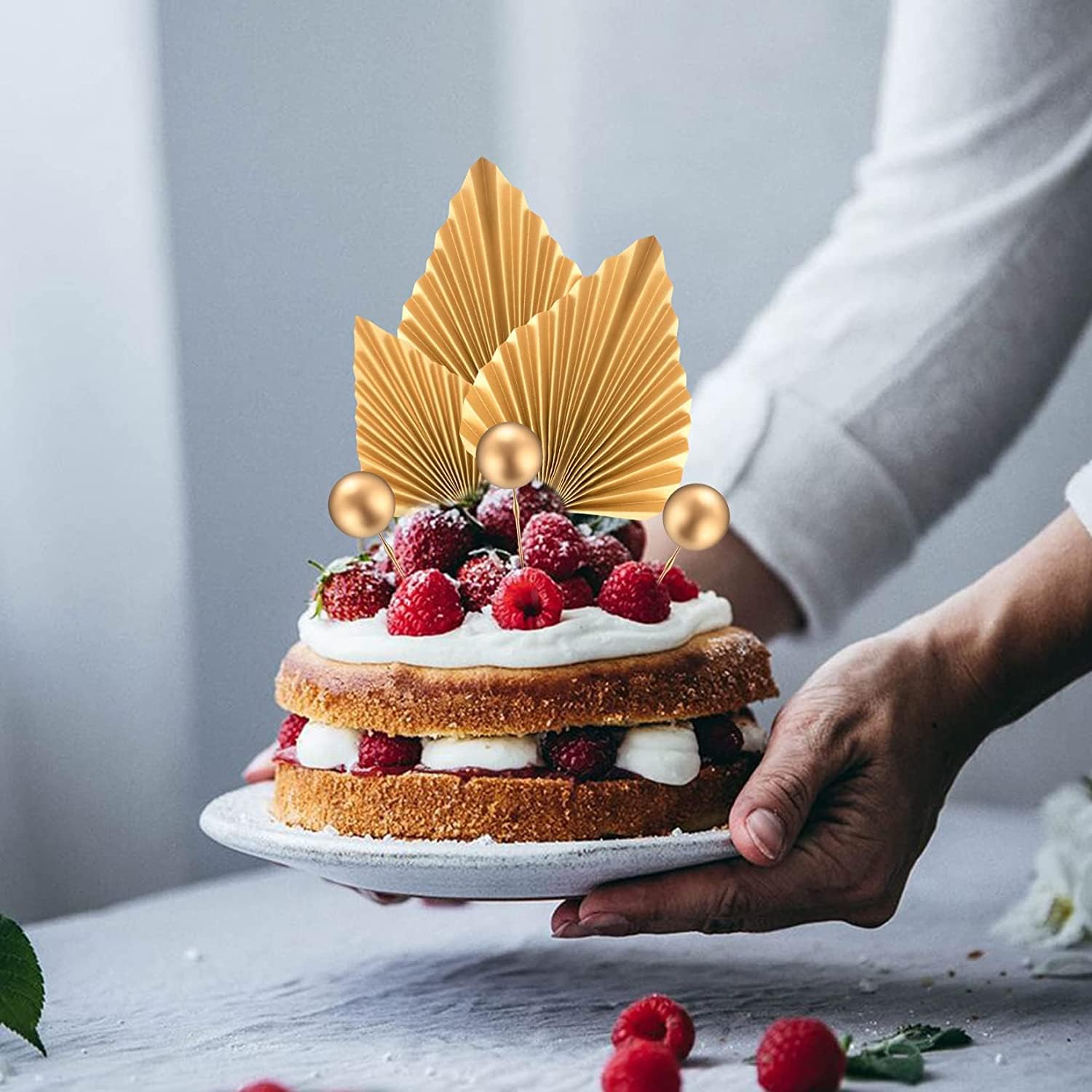 Q: How do I use the gold cake toppers for my cake?A: Using the gold cake toppers is simple. Just insert the gold balls and palm leaves directly into your cake to add a decorative touch. They are designed to complement various cake styles, making it easy to create a stunning presentation.