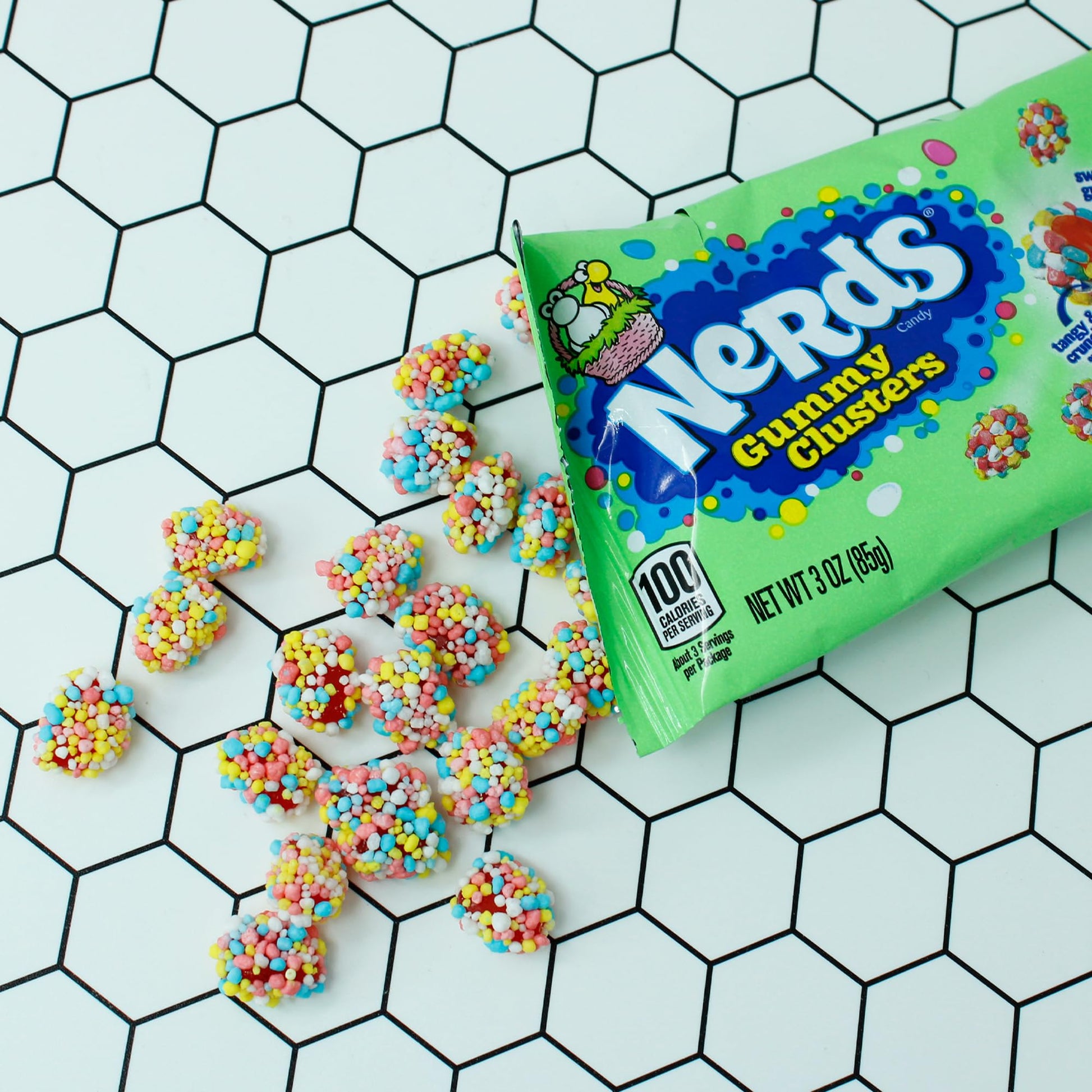Q: What is the texture of the Nerd Gummy Clusters?A: The Nerd Gummy Clusters combine a crunchy outside with a chewy center, offering a unique texture that enhances your snacking experience.