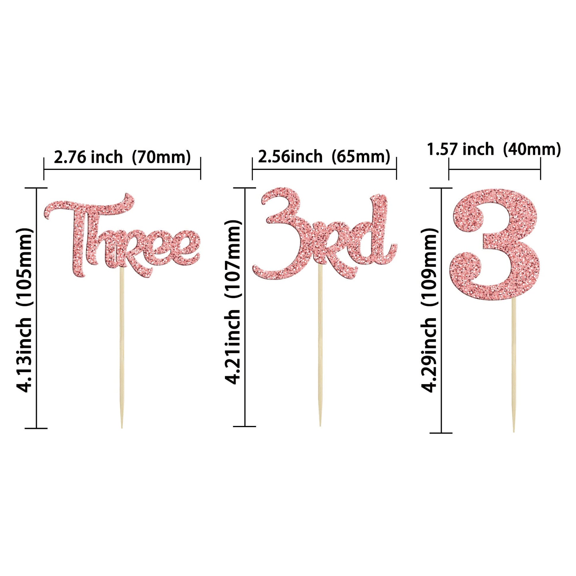 Material and Usage - Usage: They are perfect for 3rd birthday theme party, one 3rd anniversary theme party, baby shower birthday theme party cupcake decorations, which make the cupcake look tastier and more attractive - Material: Made of paper material, solid, not easy to deform and fade and can reuse for many times Please dont put them into oven for they are only decorative and not edible Package and Size - Package: Pack of 24Pcs Size: W 24*H 39W 6*H 10cm(Include Stick) comes with assembled, so you can insert into your cake directly, which make your cake more interesting - If you want to return the item, please kindly contact us first, then we will deal with it until you are satisfied Note 1The cupcake topper picks have pointed end, please keep away from children when using 2 These cupcake toppers are for decoration purposes only, not edible and do not place in oven or use for baking 3 Due to the light and screen difference, the items color may be slightly different from the pictures