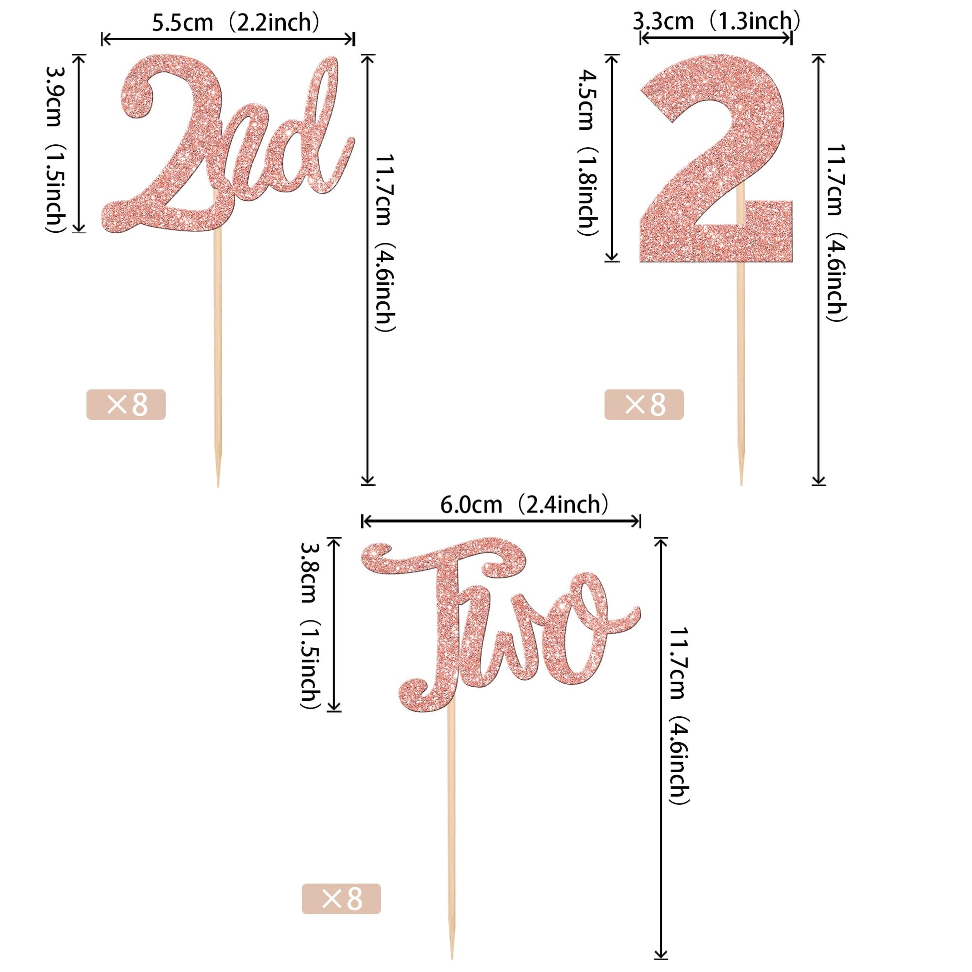 Q: What occasions are these cupcake toppers suitable for?A: These cupcake toppers are perfect for various celebrations including 2nd birthday parties, baby showers, and 2nd anniversary theme parties. They can also be used for any event that features a number 2 theme, making them versatile for many festive occasions.