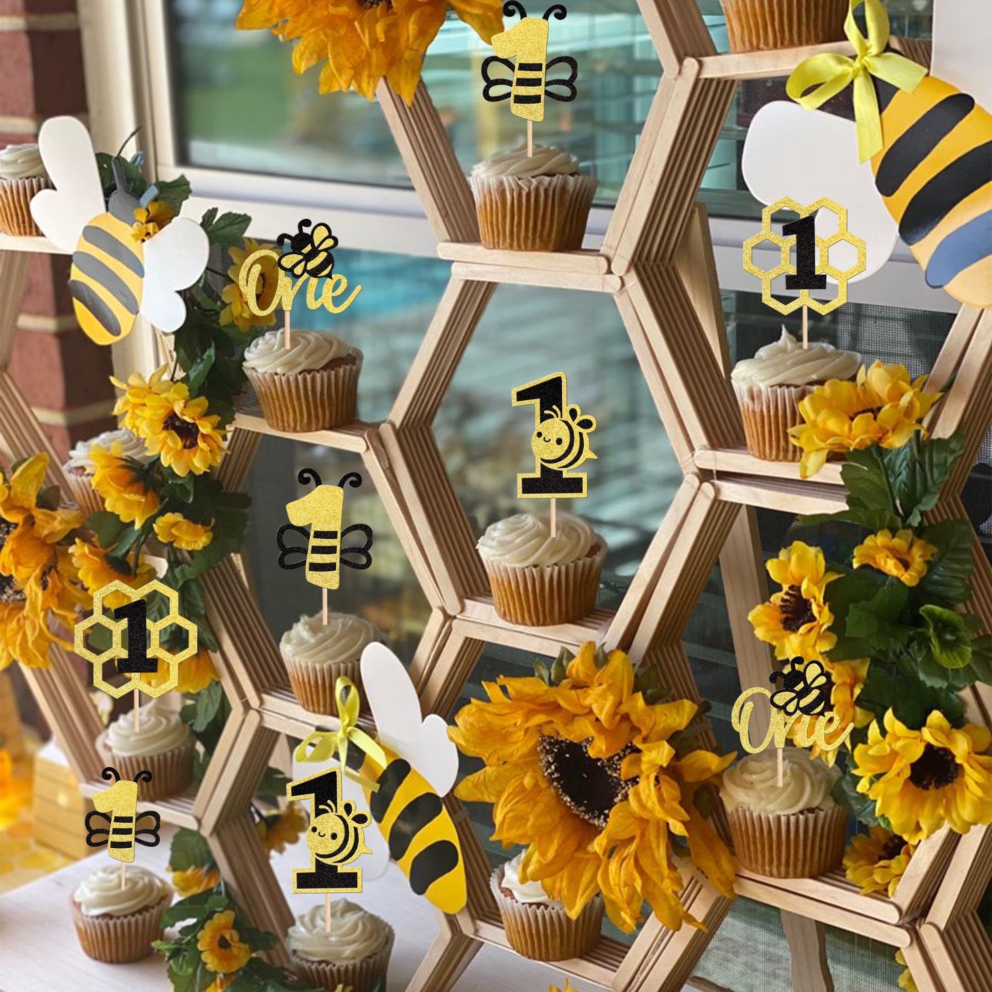 Honeycomb Bumble Bee One Cupcake Toppers For Bee Theme Baby Shower Kids Boys Girls Birthday Party Cake Decorations Supplies Perfect For Bumble Bee One Theme Party, Bee First Birthday Theme Party, Baby Shower Theme Party, Kids Boys Girls 1St Birthday Theme Party Cupcake Decorations Supplies. Pack Of 24 Pcs. The Size Is 1.7 *4.3 Inch / 1.5*4.3 Inch / 2.1*4.3 Inch/ 2.1*3.9Inch ( With Stick ) Made Of High Quality Paper Card Stock And Food Grade Sticks,Thick And Sturdy. These Cupcake Toppers Are Single Glitter, The Back Is White, And They Are Intended For Decoration Only, Please Do Not Put Them In Oven Or Microwave. If The Item You Received Has Any Defects, Please Contact Us For Refund.We Will Deal With It Within 24 Hours.